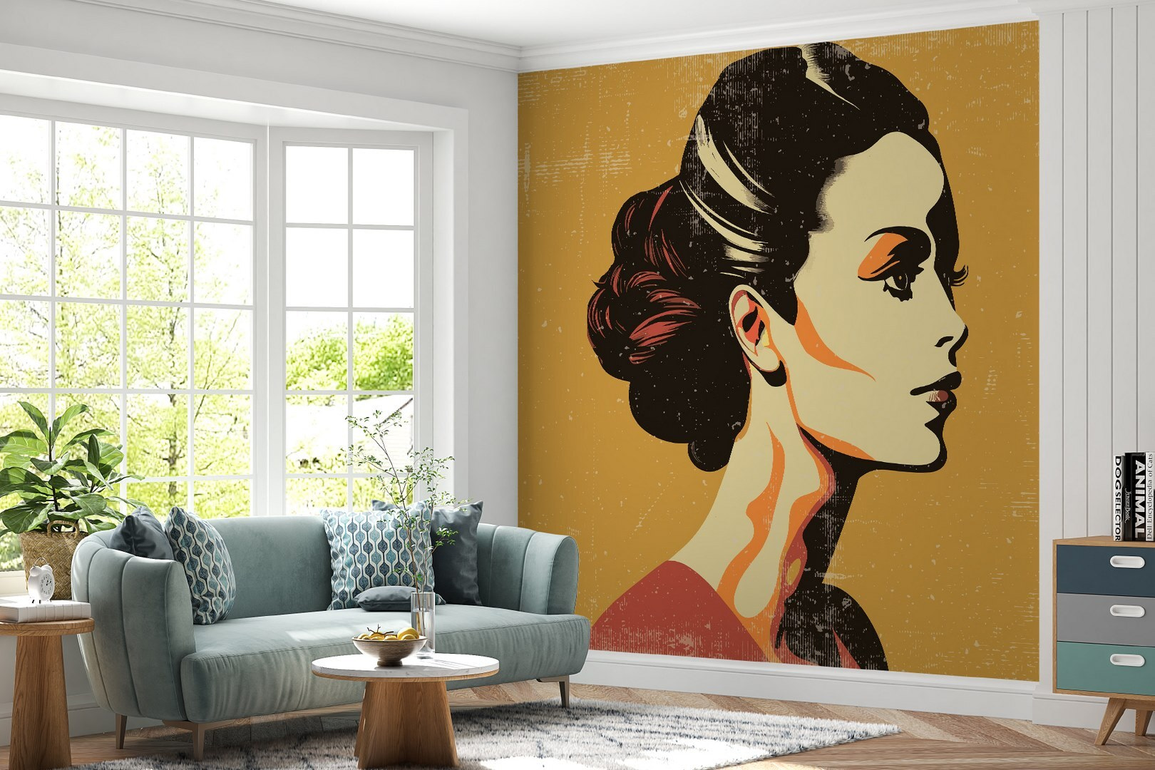 Transformați-vă spațiul cu o notă de eleganță prin intermediul acestei picturi murale uimitoare, “Woman with a Hair Bun”. Este ca și cum ai invita o prietenă grațioasă în casa ta – una care are acel vibe chic fără efort. Imaginați-vă acest lucru: sorbiți o cafea și iat-o, cu profilul ei încrezător și o explozie de culoare care luminează instantaneu camera. Galbenul și roșul cald adaugă o atmosferă confortabilă, făcându-vă să zâmbiți de fiecare dată când treceți pe acolo. Imaginați-vă cum această pictură murală ar putea stârni conversații sau adăuga un strop de inspirație în după-amiezele leneșe de duminică. Este mai mult decât un simplu decor; este o operă de artă care vă invită să vă opriți, să reflectați și să apreciați frumusețea momentelor.