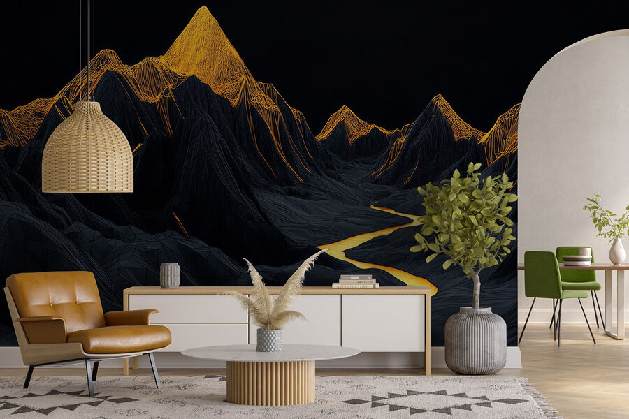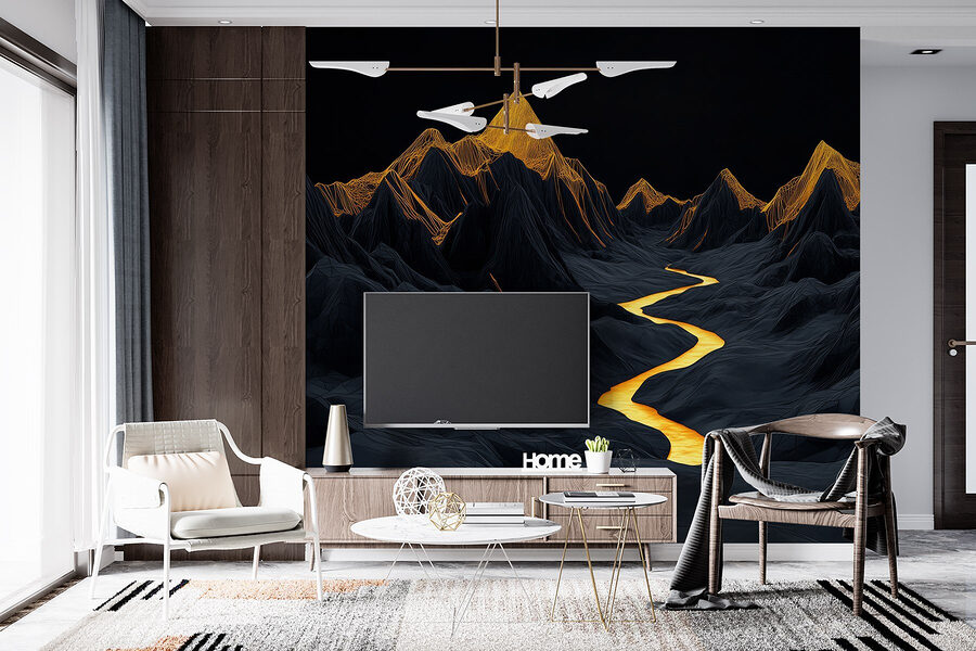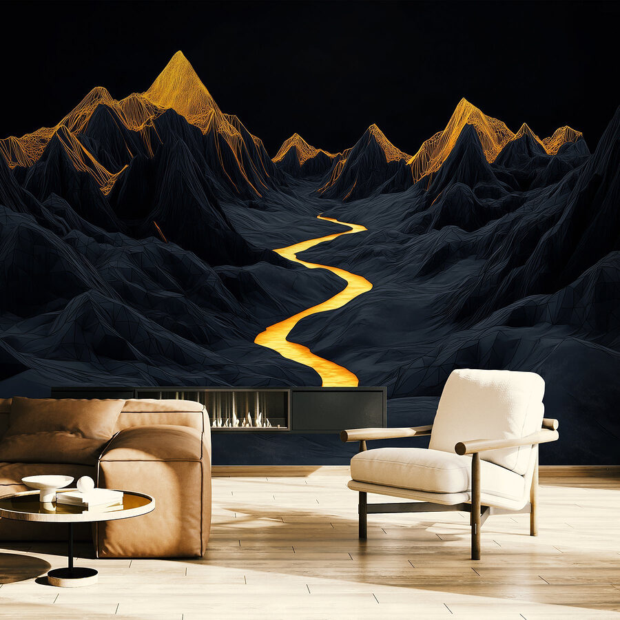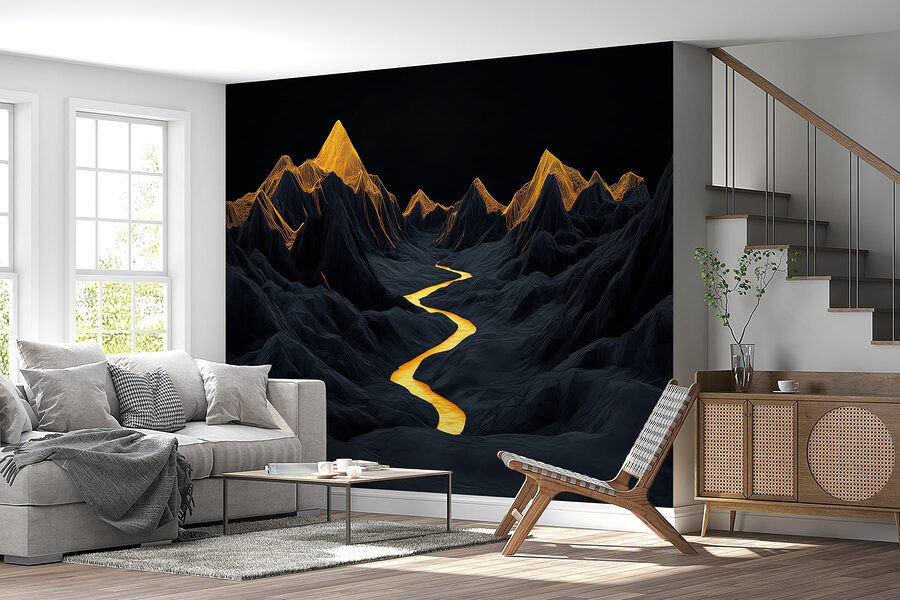 Transformați orice spațiu într-o evadare liniștită cu această pictură murală uimitoare care înfățișează un râu șerpuind printre munți maiestuoși. Imaginați-vă sorbind o băutură caldă în timp ce priviți râul auriu care strălucește printre vârfurile întunecate și dramatice – este ca și cum ați aduce natura chiar în camera dvs. de zi. Perfect pentru oricine visează la aventură sau are nevoie de un colț calm pentru a se relaxa. Fie că este punctul central al camerei sau un fundal subtil pentru viața de zi cu zi, această pictură murală adaugă un strop de sălbăticie în aer liber fără a fi nevoie de echipament de drumeție. Imaginați-vă doar: seri confortabile, lumină blândă și acea priveliște superbă în fiecare zi.