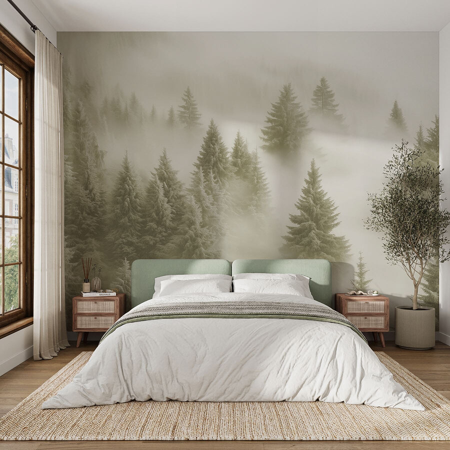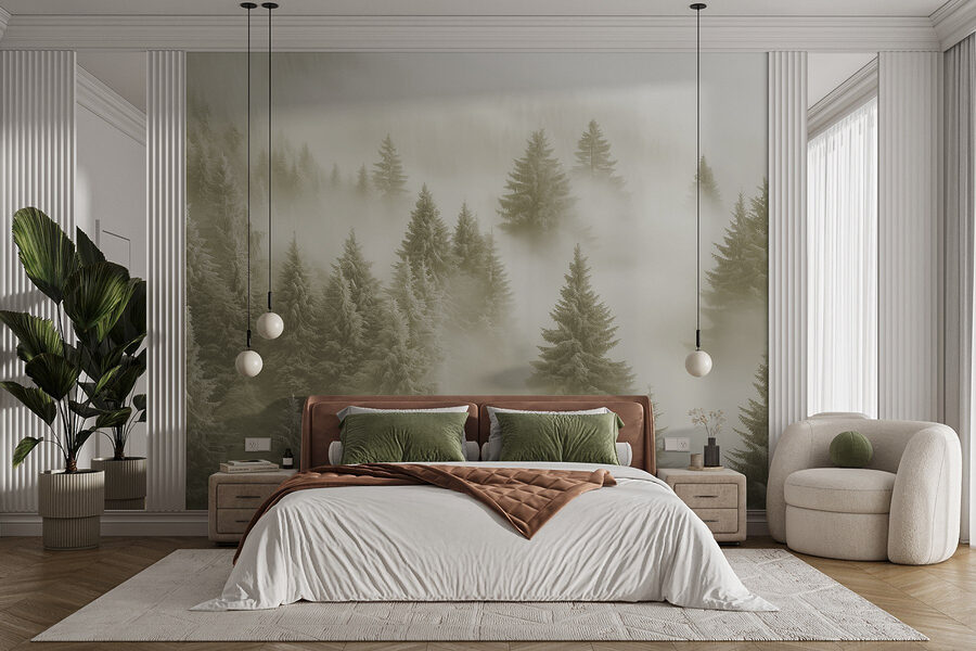 Imaginați-vă că pășiți într-o pădure senină, unde copacii sunt înalți, învăluiți într-o ceață blândă. Această pictură murală, “Grup de copaci în ceață”, surprinde perfect această atmosferă liniștită. Este ca și cum ai aduce o bucățică de natură în interior, fără să fie nevoie să uzi nimic – întreținere foarte redusă!