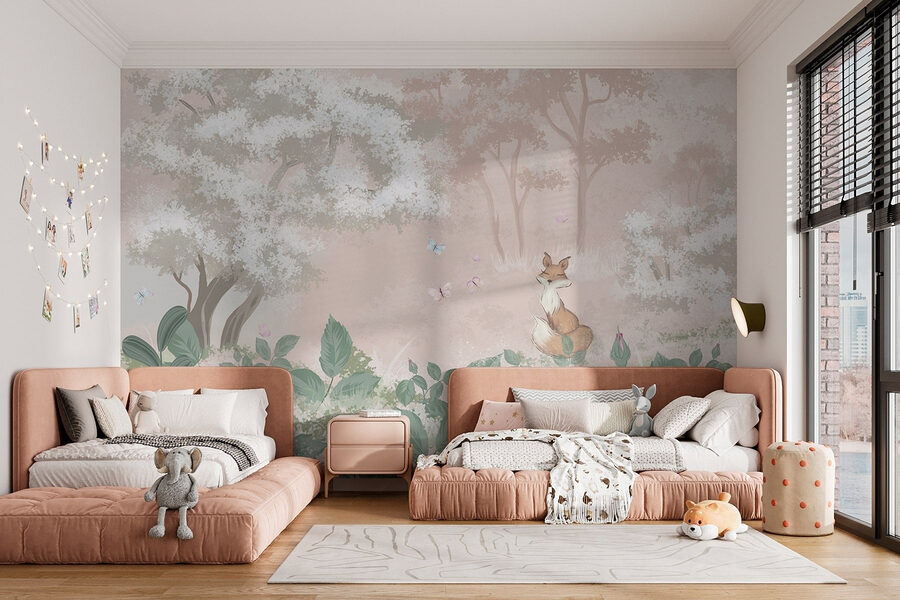 Transformați-vă spațiul cu această pictură murală încântătoare cu o vulpe fermecătoare și fluturi fluturând, într-un fundal de pădure senină. Este ca o mică felie de natură chiar în camera dvs. de zi. Imaginați-vă că vă relaxați pe canapea cu o carte bună, simțindu-vă ca și cum ați fi intrat într-o pădure capricioasă. Culorile blânde creează o vibrație liniștitoare, invitând la un sentiment de calm. Fiecare privire ar putea stârni un zâmbet, deoarece vulpea pare să vegheze asupra ta, iar fluturii? Mici însoțitori încântători. Perfect pentru a adăuga un farmec relaxant oricărui colț – este o pictură murală care spune: “Relaxează-te, natura este chiar aici!”