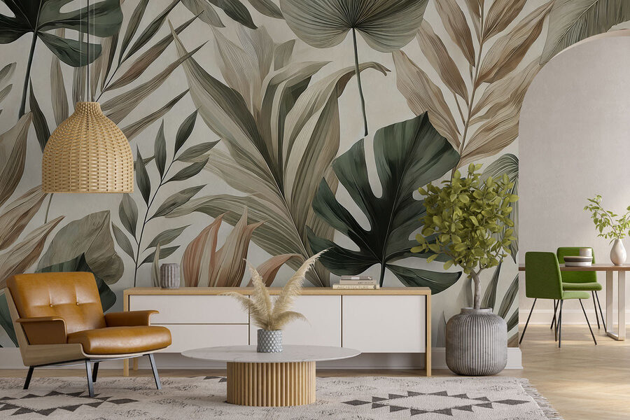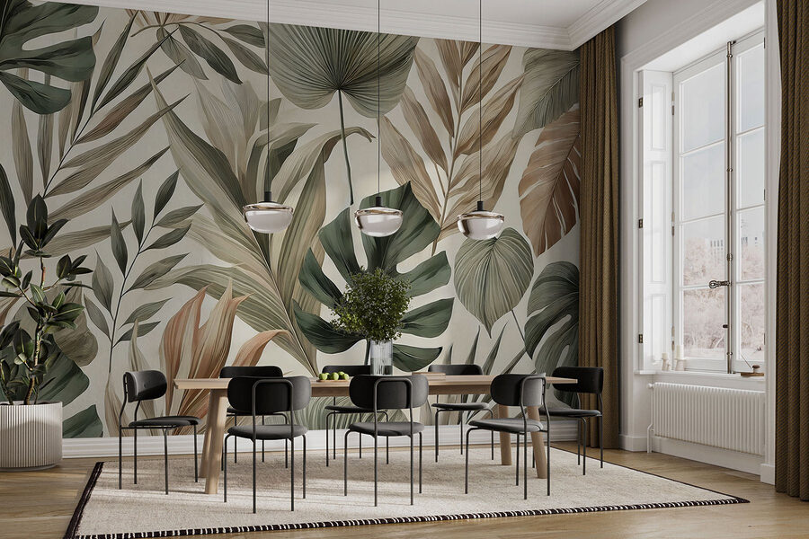 Transformați orice cameră într-o oază tropicală cu această murală uimitoare cu frunze luxuriante și tonuri pământii. Imaginați-vă că vă treziți și vă simțiți ca într-o pădure tropicală senină – sună de vis, nu? Fie că este vorba de camera de zi sau de un colțișor de lectură confortabil, amestecul de verde și maro moale creează o atmosferă liniștitoare, perfectă pentru momentele în care adultul devine un pic prea mult. În plus, este ca și cum ai avea o mini-vacanță acasă. Doar să nu fiți surprinși când prietenii încep să vă întrebe când organizați o petrecere pe plajă! Ușor de aplicat și sigur va stârni conversații inspirate de natură, acest mural este o gură de aer proaspăt pentru orice spațiu.