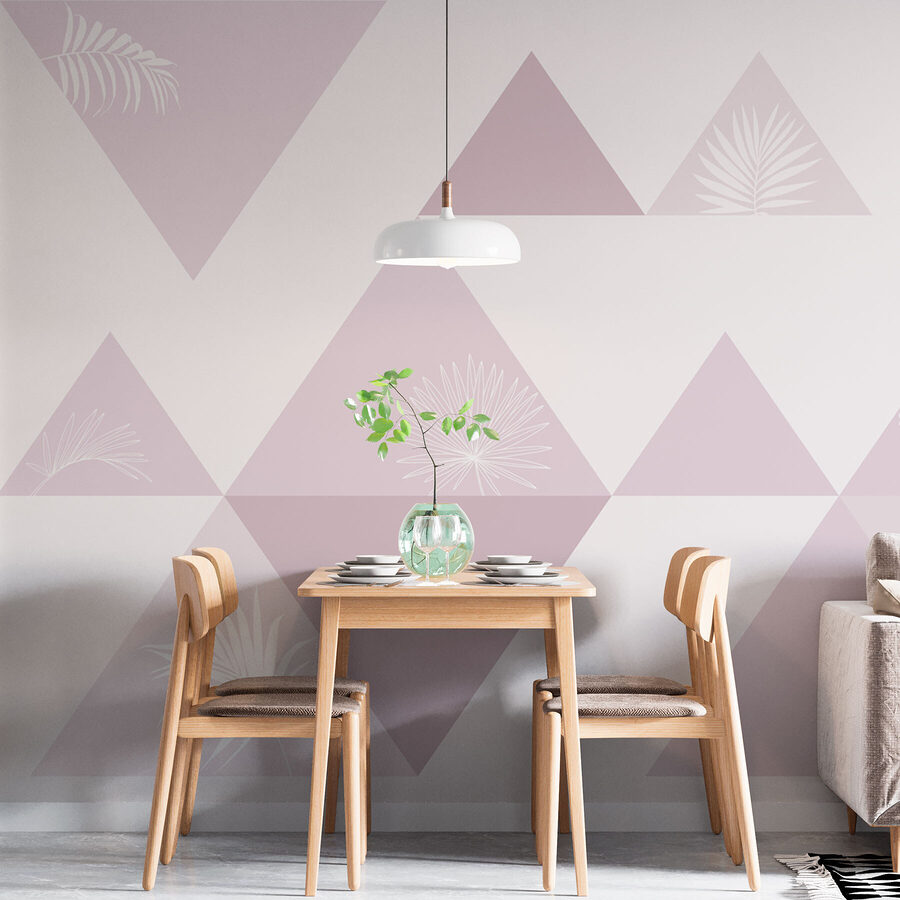 Fototapet Triunghiuri roz cu flori albe Fototapet Triunghiuri roz cu flori albe