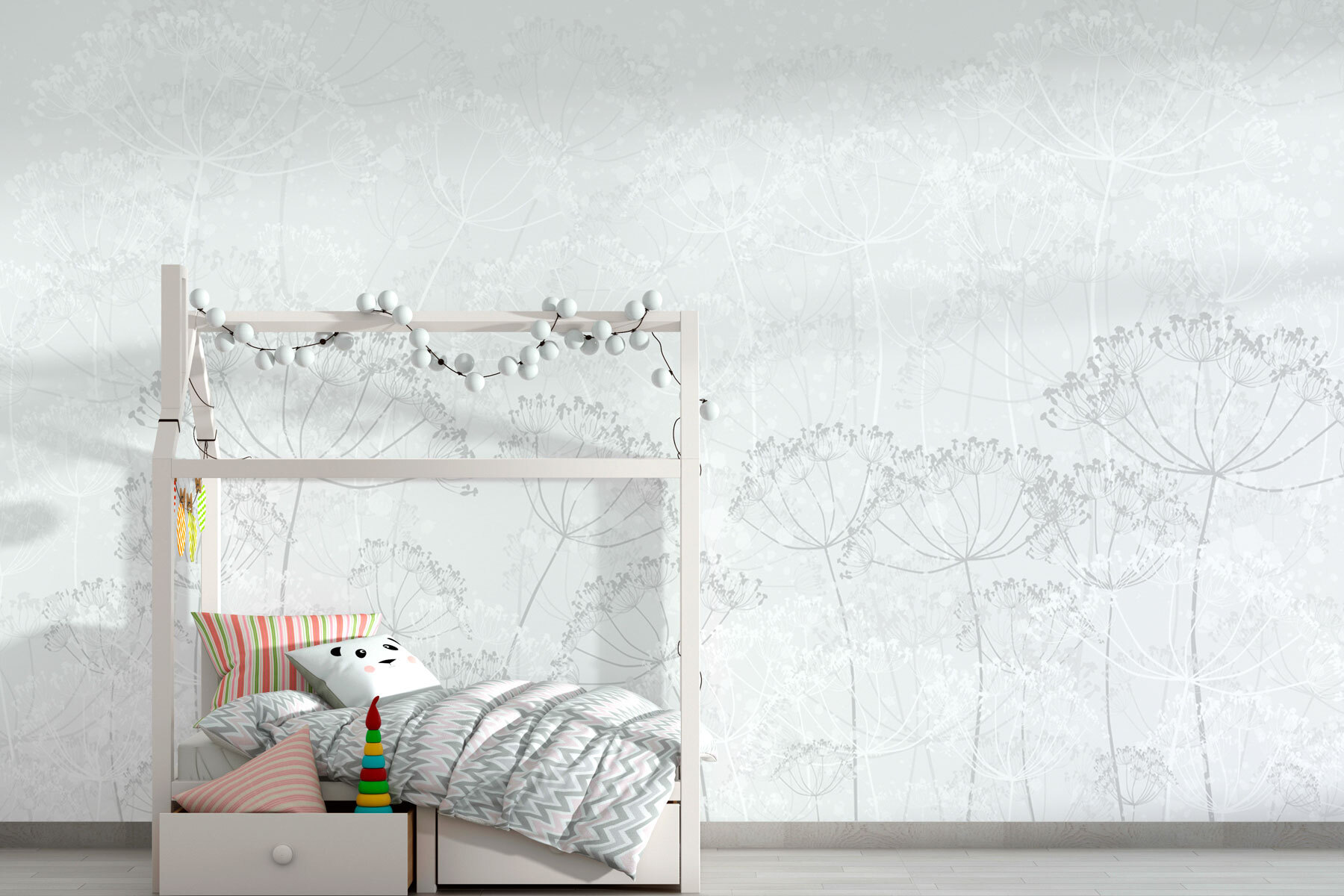 Transformați-vă spațiul cu această pictură murală încântătoare, “Fond alb cu flori”. Imaginați-vă că pășiți într-o grădină senină, unde florile delicate șoptesc liniște. Nuanțele moi de alb și gri ale acuarelei creează un fundal liniștitor, perfect pentru un colț de lectură confortabil sau pentru a înveseli un hol mai puțin inspirat.