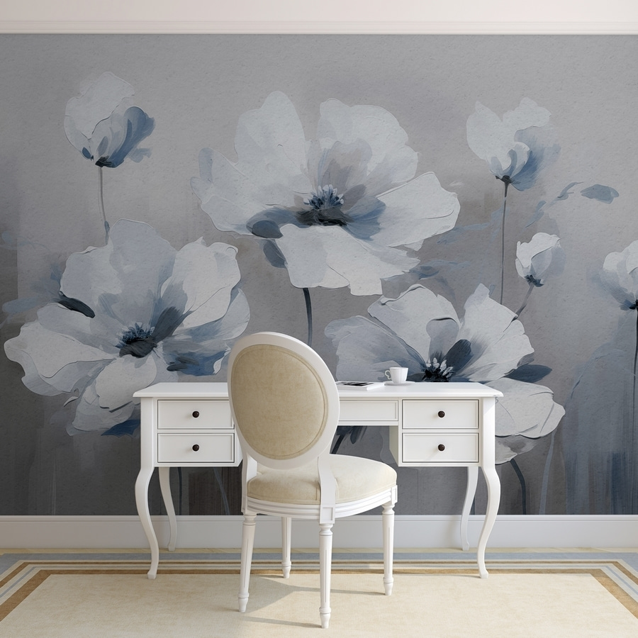 Transformați-vă spațiul cu această uimitoare pictură murală de flori albe, o gură de aer proaspăt care aduce frumusețea naturii în interior. Fiecare floare delicată pare să se legene într-o briză blândă, scăldată în nuanțe moi de gri și alb – vorbim despre vibrații pașnice! Imaginați-vă acest lucru într-un colț de lectură confortabil sau într-un hol luminos; este ca și cum ați avea o grădină chiar pe perete. Ar putea stârni conversații sau ar ajuta la liniștirea sufletului după o zi lungă. În plus, efectul de acuarelă adaugă un strop minunat de artă – cine nu vrea asta? Perfect pentru oricine dorește să își îmbunătățească decorul, farmecul acestei picturi murale va înflori cu siguranță în orice cameră. Serios, ar putea transforma un perete monoton într-o mini-oază. Imaginați-vă doar sorbind o cafea în apropiere, absorbind toate aceste sentimente florale relaxate!