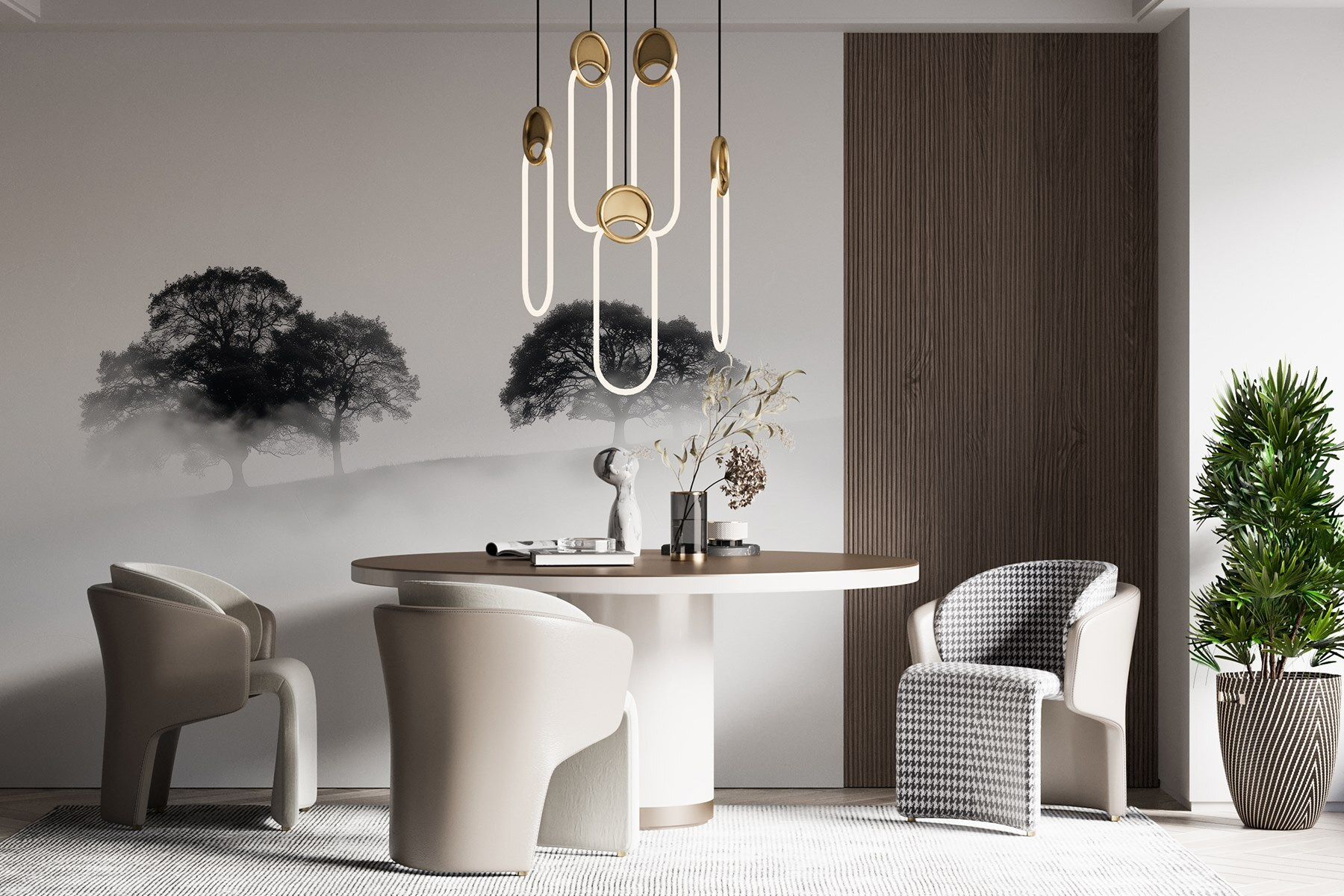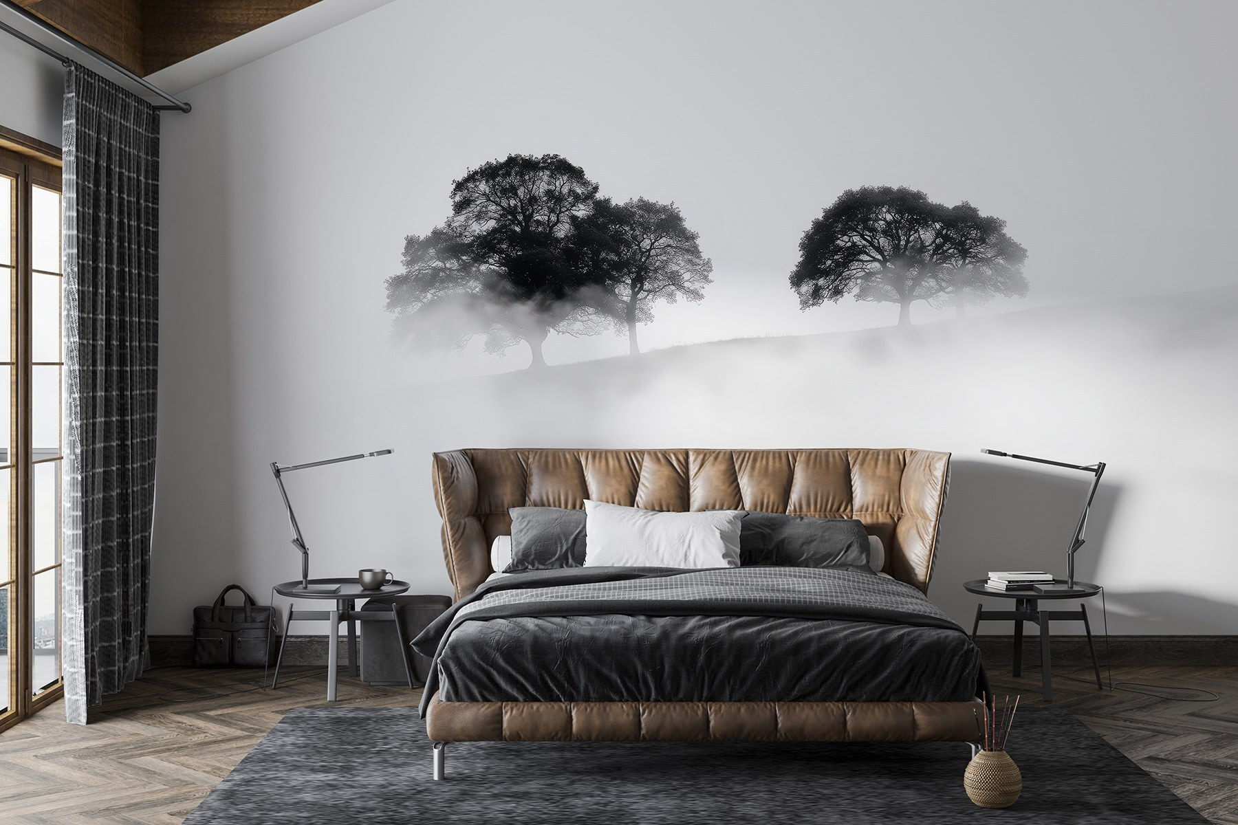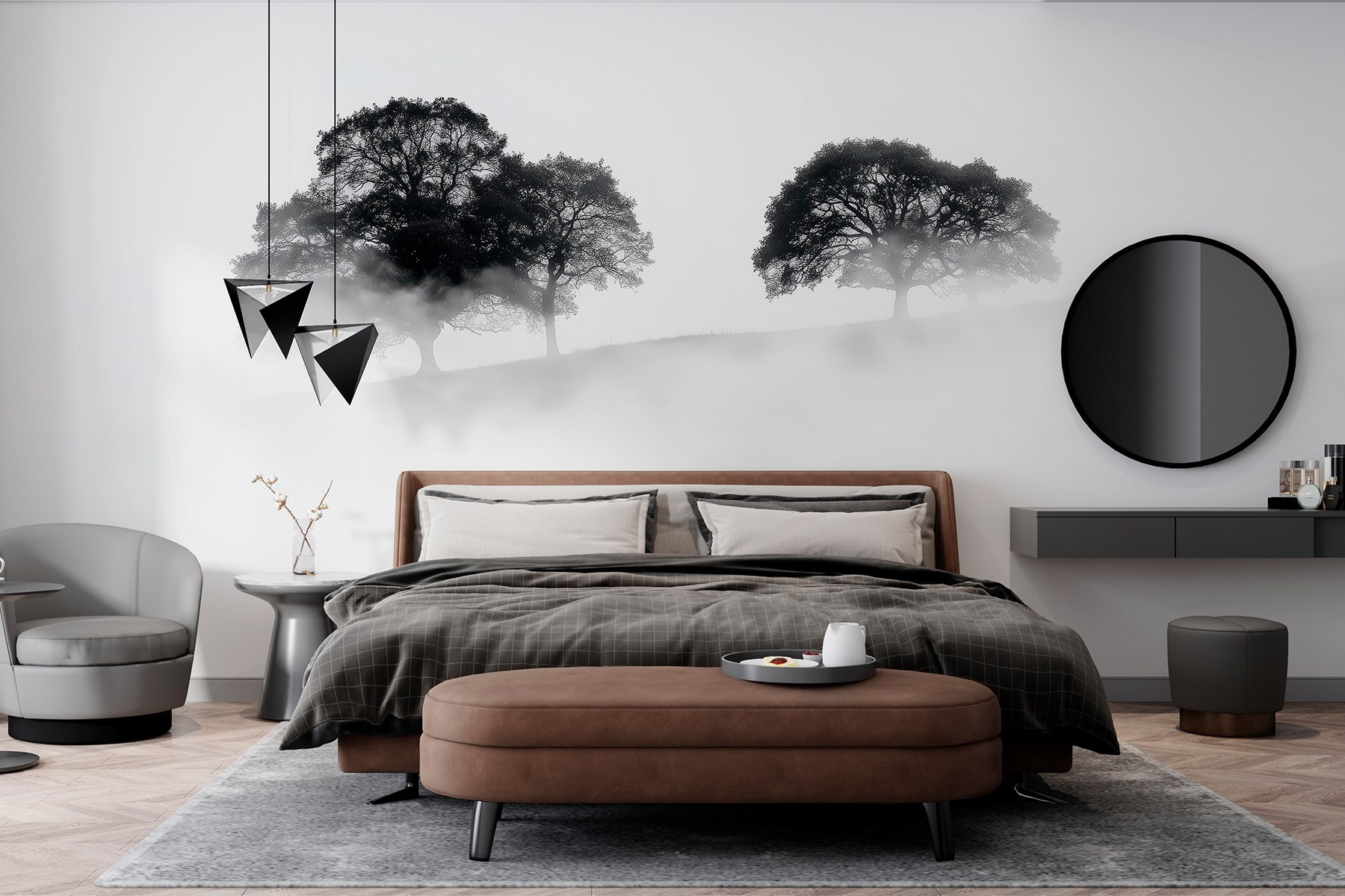 Transformați orice cameră într-o evadare senină cu această pictură murală încântătoare cu copaci învăluiți în ceață. Imaginați-vă că pășiți în spațiul dvs. și simțiți imediat cum vă cuprinde calmul – ca o ceață blândă care vă învăluie umerii într-o dimineață liniștită. Eleganța discretă a siluetelor adaugă o notă de mister, perfectă pentru a stârni conversația sau contemplația.