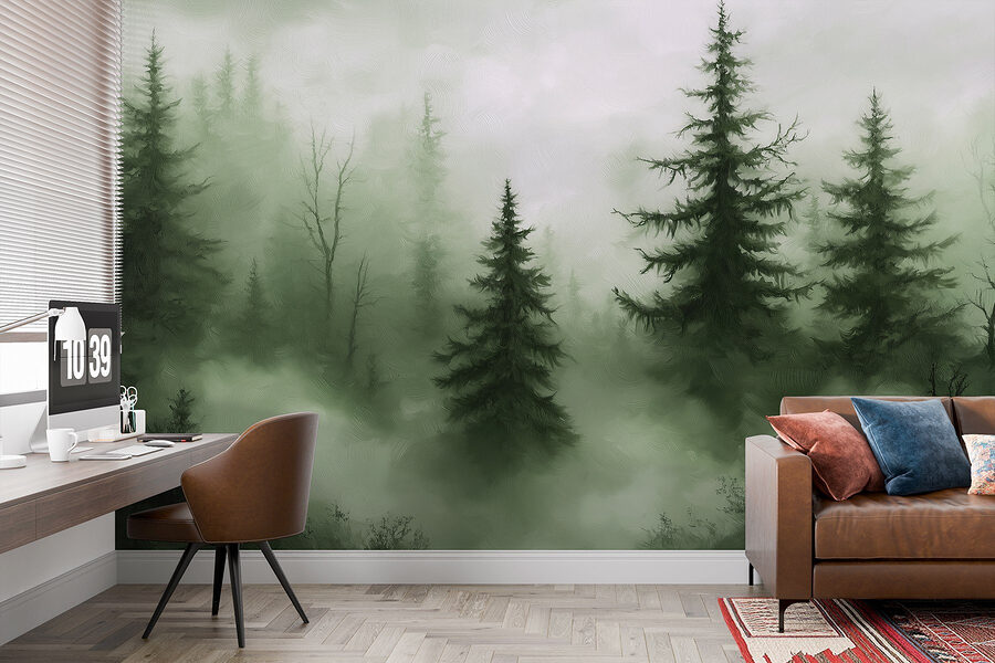 Intrați într-o evadare de vis cu pictura murală “Foggy Forest with Trees”. Imaginați-vă sorbindu-vă cafeaua de dimineață în timp ce sunteți înconjurat de o pădure liniștită și cețoasă, unde copacii înalți par să vă șoptească secrete. Acest design aduce o felie de natură chiar în casa dvs. – perfect pentru a crea un colț confortabil sau un refugiu liniștit. Verdele atenuat și texturile moi invită la calm, aproape ca o îmbrățișare din partea Mamei Natură. În plus, nu este nevoie de cizme de drumeție sau spray pentru insecte! Stați pe spate, relaxați-vă și lăsați pereții să vorbească.