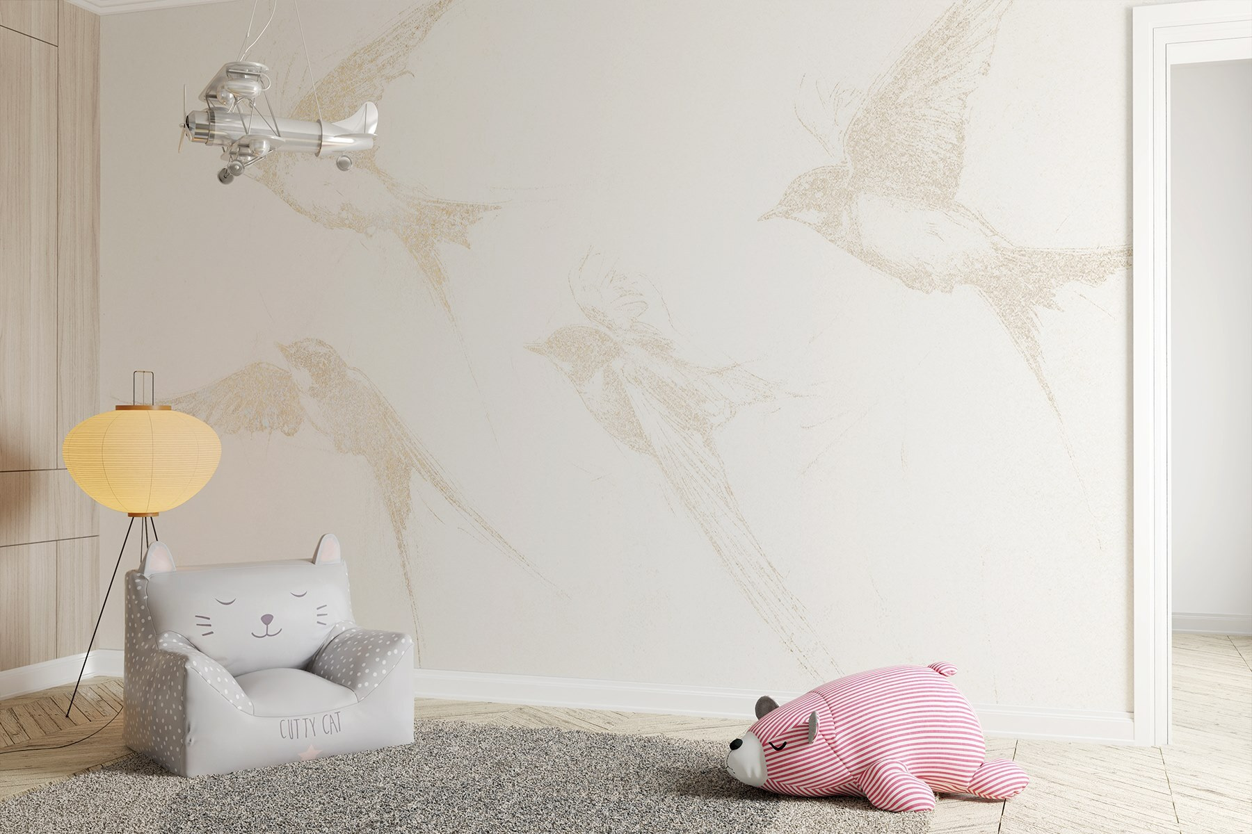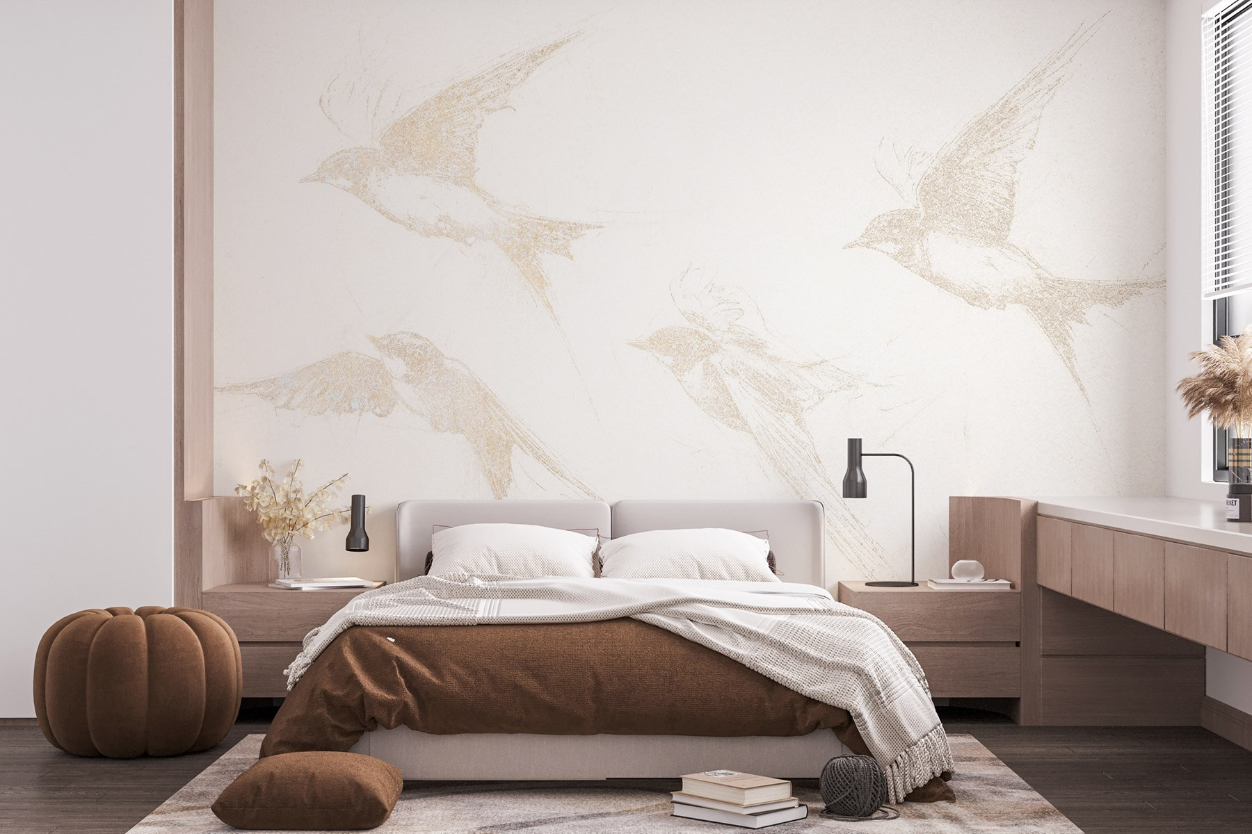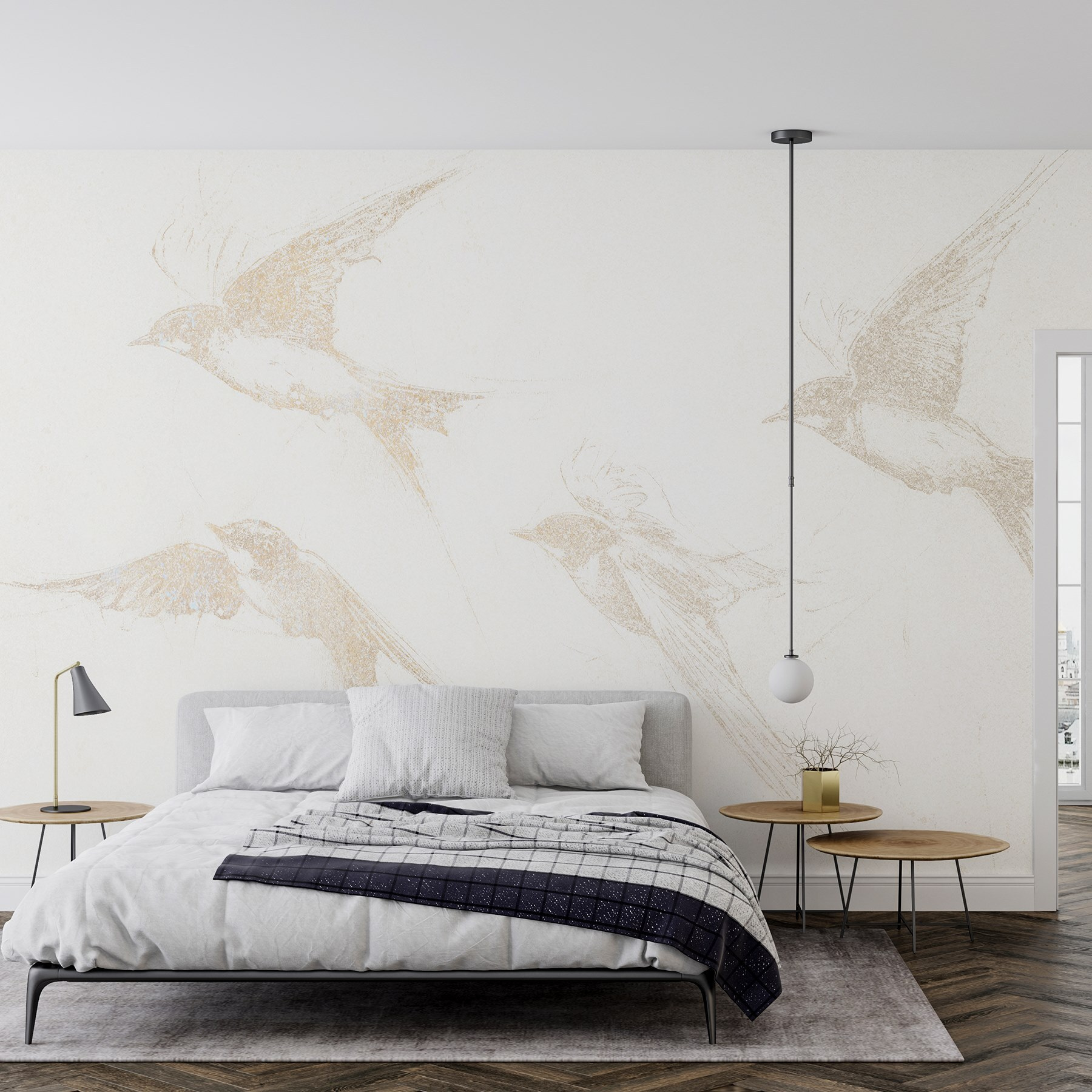 Îmbunătățiți-vă spațiul cu această pictură murală uimitoare care prezintă un grup de păsări în zbor. Este ca și cum ai avea o bucată de natură chiar pe perete – nu este nevoie de binoclu pentru observarea păsărilor aici! Designul moale, schițat, adaugă o notă blândă, făcându-l perfect pentru orice cameră. Imaginați-vă sorbindu-vă cafeaua de dimineață în timp ce priviți aceste creaturi grațioase zburând pe lângă dumneavoastră. Puțină fantezie și multă eleganță, această pictură murală invită la sentimente de libertate și lejeritate. Este ideală pentru a crea o atmosferă calmă, și cine nu dorește puțină natură în interior? Perfect pentru acele colțuri confortabile în care doriți doar să vă relaxați.