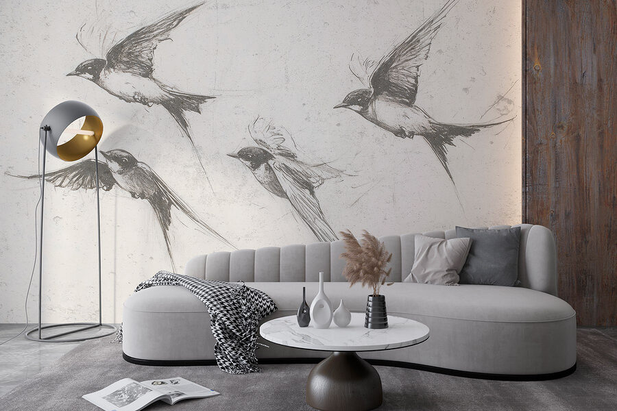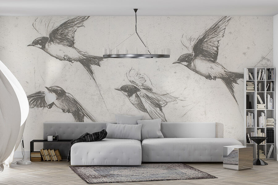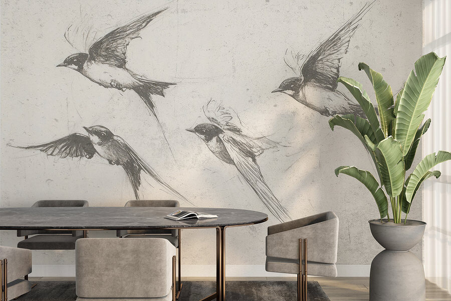 Imaginați-vă că intrați într-un spațiu în care păsările par să zboare direct de pe perete. Această pictură murală în acuarelă, “Grup de păsări zburând”, aduce acea notă capricioasă în orice cameră. Cu nuanțe blânde și tușe grațioase, pictura surprinde sentimentul de libertate – ca o briză ușoară care trece pe lângă noi. Perfectă pentru un colțișor confortabil sau o intrare plină de viață, pare că natura se strecoară direct în casa dvs. Imaginați-vă sorbind un ceai sau citind o carte în timp ce acești prieteni cu pene zboară în liniște. Nu este doar decor, este o mică evadare, un memento că frumusețea este peste tot, așteptând să fie observată.