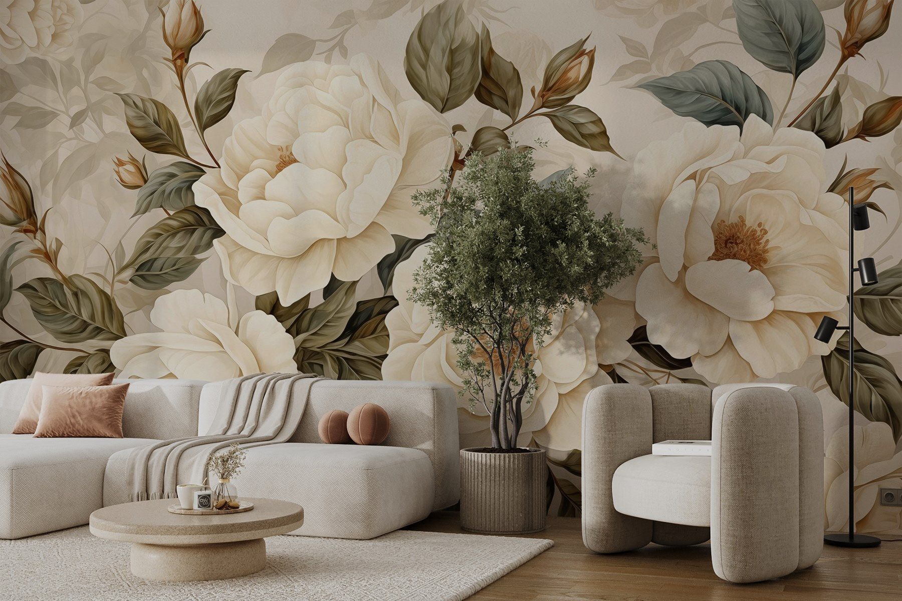 Transformarea unei camere într-o oază confortabilă este floare la ureche cu “Delicate Blooms in Soft Tones”. Imaginați-vă că pășiți într-un spațiu în care bujorii cremoși înfloresc fără efort pe pereți, învăluindu-vă în nuanțe moi care par aproape de vis. Este ca și cum ai avea propria ta grădină, fără albinele enervante. Perfect pentru acele zile în care doriți doar să sorbiți un ceai, să vă relaxați cu o carte bună sau să visați cu ochii deschiși la picnicuri de primăvară.