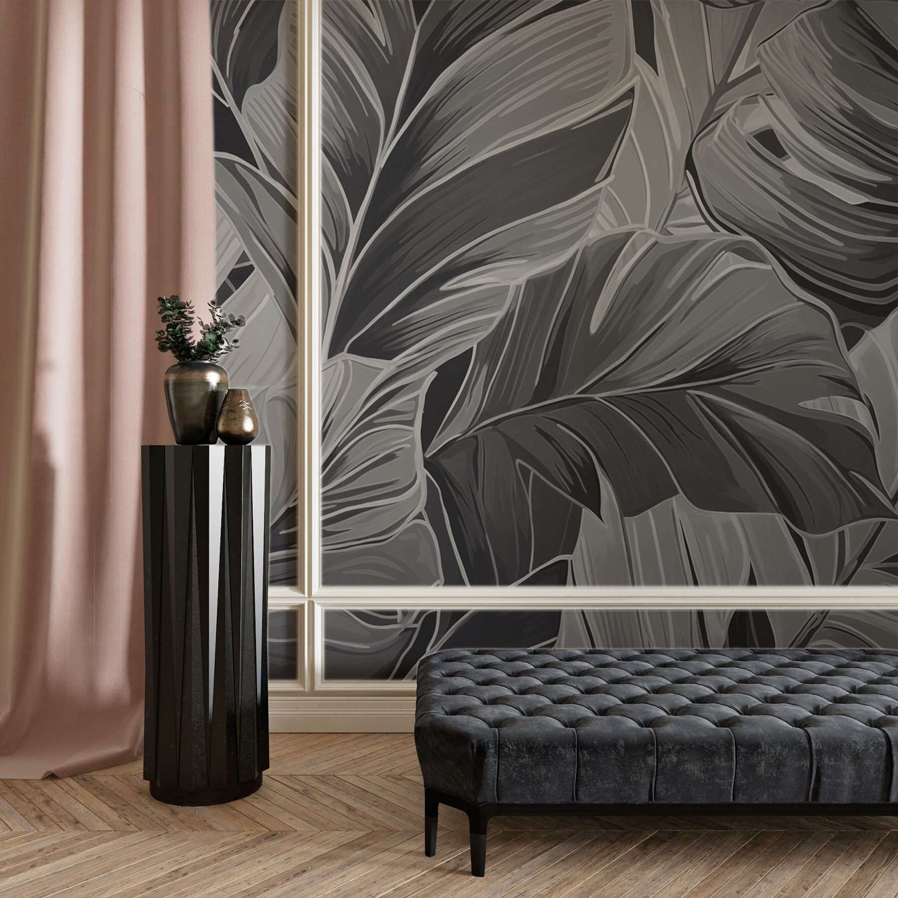 Transformați-vă spațiul într-o oază tropicală relaxantă cu pictura murală “Lush Leaves in Monochrome Tones”. Este ca și cum ai aduce un pic din junglă în interior, dar fără țânțarii enervanți. Imaginați-vă acest lucru: un fundal senin de frunze elegante care vă acoperă pereții, adăugând profunzime și caracter. Tonurile monocrome oferă o atmosferă elegantă, dar subtilă, perfectă pentru a completa mobilierul luminos sau pentru a crea un refugiu calm. Fie că sorbiți cafeaua dimineața sau urmăriți emisiunile preferate, această pictură murală vă învăluie într-o îmbrățișare confortabilă a naturii. Este arta care insuflă viață în orice cameră – îndrăzniți să visați puțin!