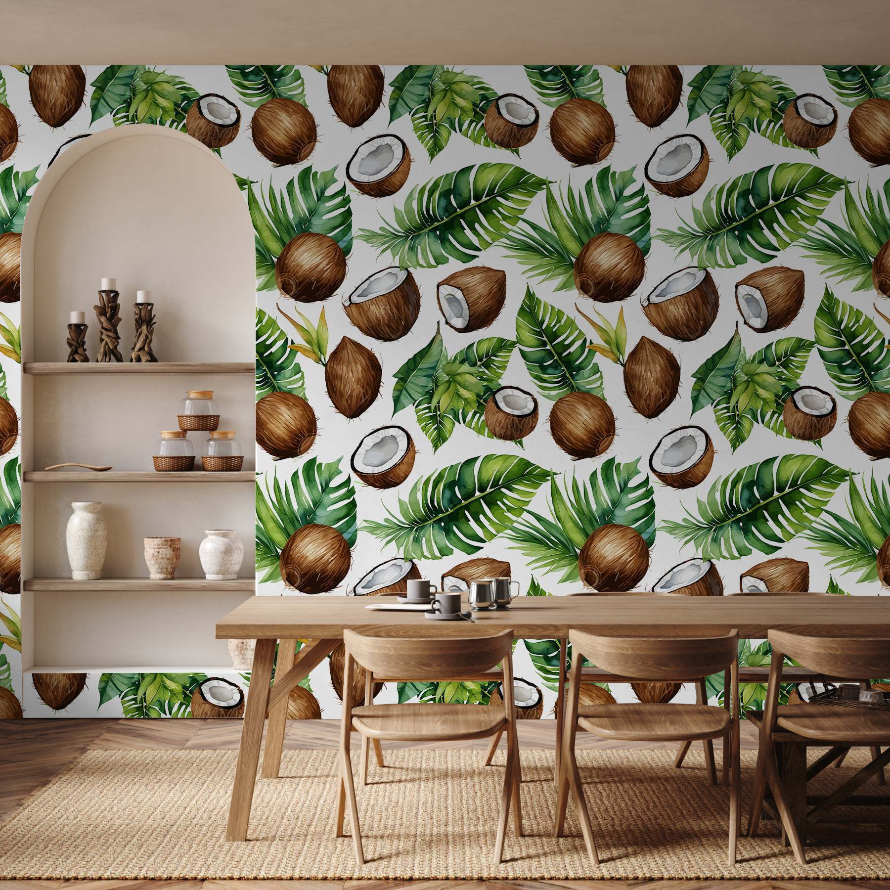 Fototapet Model de nuci de cocos și frunze (SKU: w02293)