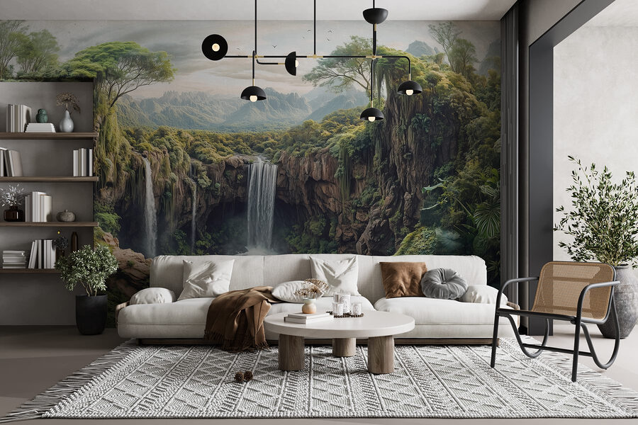 Transformați-vă spațiul într-un refugiu senin cu această uimitoare pictură murală “Cascadă într-o pădure”. Imaginați-vă acest lucru: pășiți în camera dvs. și simțiți că tocmai ați intrat într-o junglă luxuriantă, unde sunetul apei în cascadă umple aerul (bine, poate nu sunetul, dar vă dați seama de senzație). Cu verdele vibrant și o cascadă uluitoare, invită la acel sentiment de evadare atât de necesar. Imaginați-vă sorbind cafea, visând cu ochii deschiși la următoarea mare aventură sau pur și simplu bucurându-vă de calmul pe care îl aduce. Această pictură murală nu este doar decor; este o mini-vacanță pentru pereții tăi! Perfectă pentru iubitorii de natură sau pentru oricine are nevoie de o notă de liniște acasă. Nu fi surprins dacă prietenii încep să te întrebe când îi vei duce în “noul” tău loc din natură!