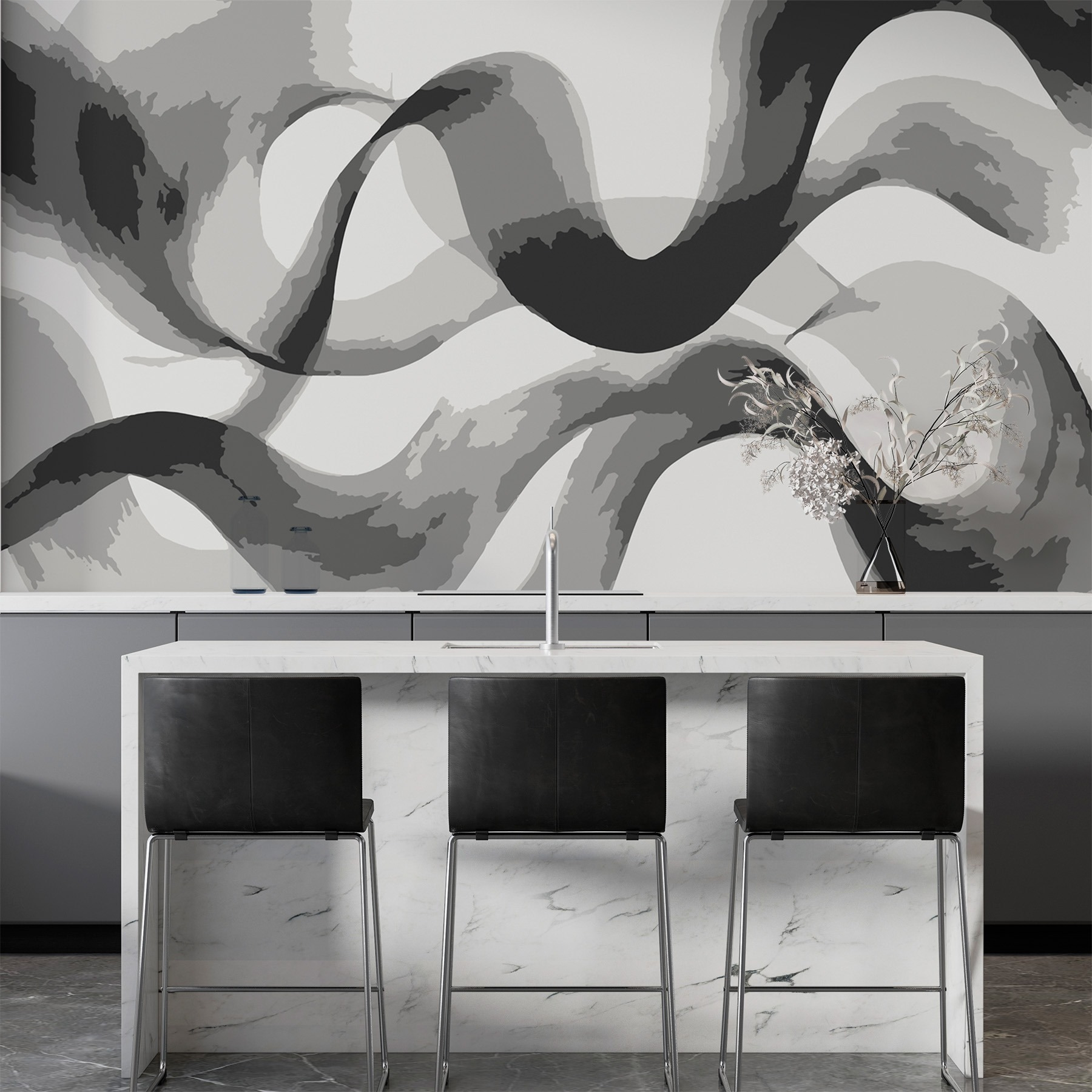 Transformați-vă spațiul cu acest uimitor “Fototapet Grey and White Swirly Lines”. Imaginați-vă că pășiți într-o cameră modernă și primitoare, în care curbele delicate de gri și alb dansează pe pereți. Este ca și cum v-ați înfășura casa într-o eșarfă confortabilă și elegantă!