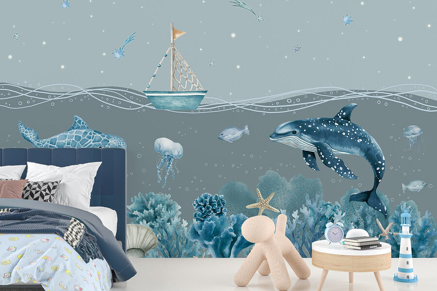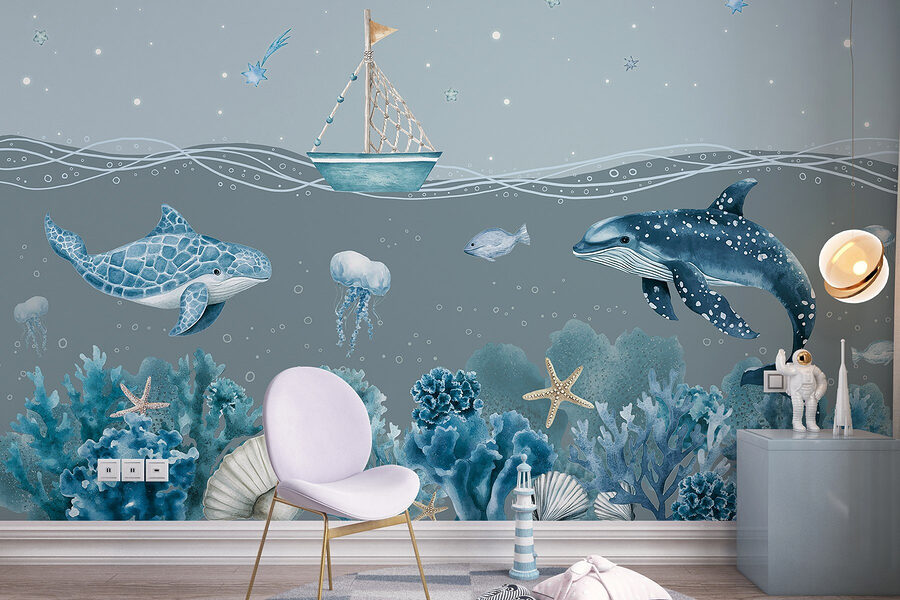 Transformați-vă spațiul într-o evadare subacvatică senină cu pictura murală “Sea Life”. Imaginați-vă că vă treziți în fiecare zi cu delfini jucăuși și meduze blânde dansând pe pereții dvs. Această scenă de vis surprinde o bărcuță fermecătoare alunecând printr-o mare liniștită, înconjurată de corali și stele de mare vibrante. Este ca și cum ai avea o bucată de ocean acasă – fără părul sărat! Perfectă pentru camera unui copil sau chiar pentru un colțișor de lectură confortabil, această pictură murală aduce o notă de capriciu și calm. Lăsați culorile să vă învăluie, creând o atmosferă calmă care ar putea inspira visuri cu ochii deschiși despre aventurile din ocean.