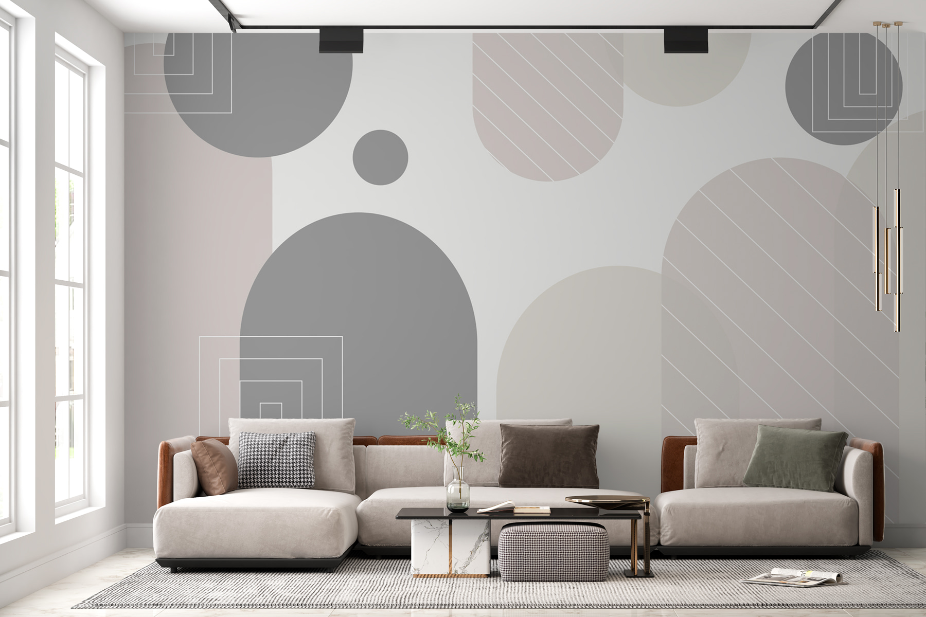 Transformați-vă spațiul cu această pictură murală geometrică moale, care șoptește rafinament. Imaginați-vă acum: un colț confortabil scăldat în culori neutre blânde, unde fiecare curbă și linie pare să danseze armonios pe perete. Este ca prietenul perfect care știe cum să înveselească atmosfera fără să spună un cuvânt.