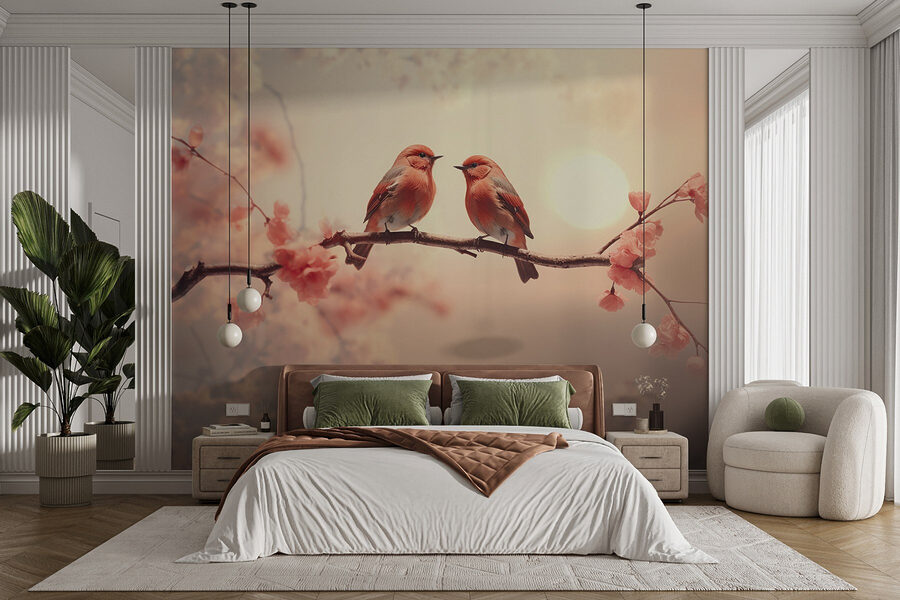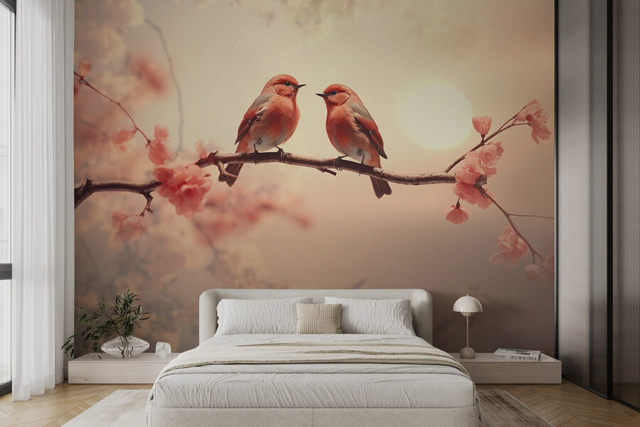 Transformați-vă spațiul într-un refugiu senin cu această pictură murală încântătoare, “Două păsări pe o creangă”. Imaginați-vă: tonuri moi de acuarelă care se îmbină ca un vis în timp ce păsările fermecătoare se adăpostesc printre flori delicate. Este ca și cum ai avea o mică bucată de natură chiar pe perete, șoptindu-ți povești despre diminețile de primăvară. Imaginați-vă sorbind o cafea în timp ce vă absorbiți în nuanțele blânde, grijile topindu-se. Perfectă pentru un colț de lectură confortabil sau un dormitor liniștitor, această pictură murală invită la căldură și liniște. Nu este doar decor; este o stare de spirit. Cine nu și-ar dori să împărtășească un moment minunat cu acești prieteni cu pene?