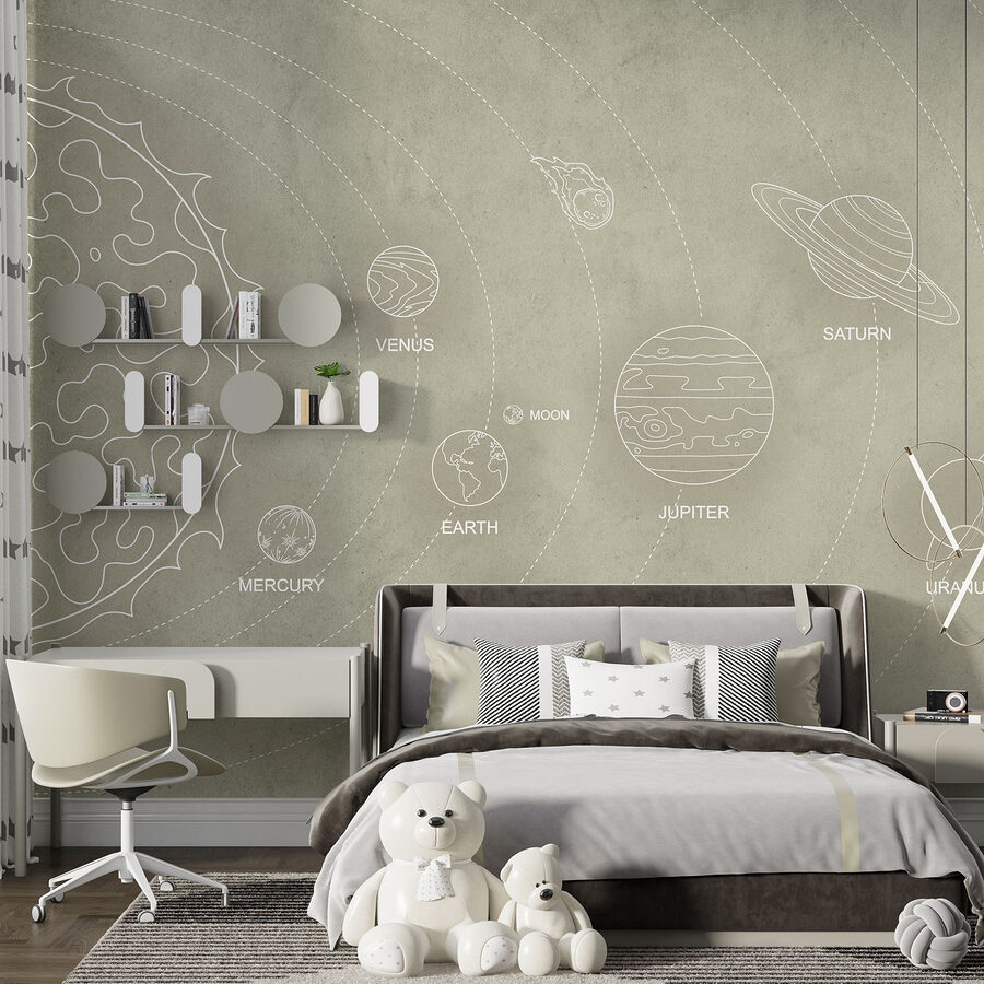 Transformați-vă spațiul într-un tărâm al minunilor cosmice cu această pictură murală “Diagrama planetelor”. Imaginați-vă că intrați într-o încăpere în care Mercur, Venus și chiar Pluto se relaxează pe perete ca și cum locul le-ar aparține. Este ca și cum ai avea un loc în primul rând în univers – fără a avea nevoie de o navă spațială! Liniile curate și tonurile liniștitoare ale acestei picturi murale o fac perfectă pentru un birou, o cameră de copil sau pentru orice alt loc care ar avea nevoie de un strop de magie celestă. Fie că sunteți pasionat de astronomie sau pur și simplu iubiți o atmosferă înstelată, această pictură murală stârnește curiozitatea și vă invită să visați cu ochii deschiși la galaxii îndepărtate. Imaginați-vă-i pe cei mici arătând spre Marte și întrebând dacă pot merge în vizită. Nu este doar decor; este un bilet către un univers al imaginației.
