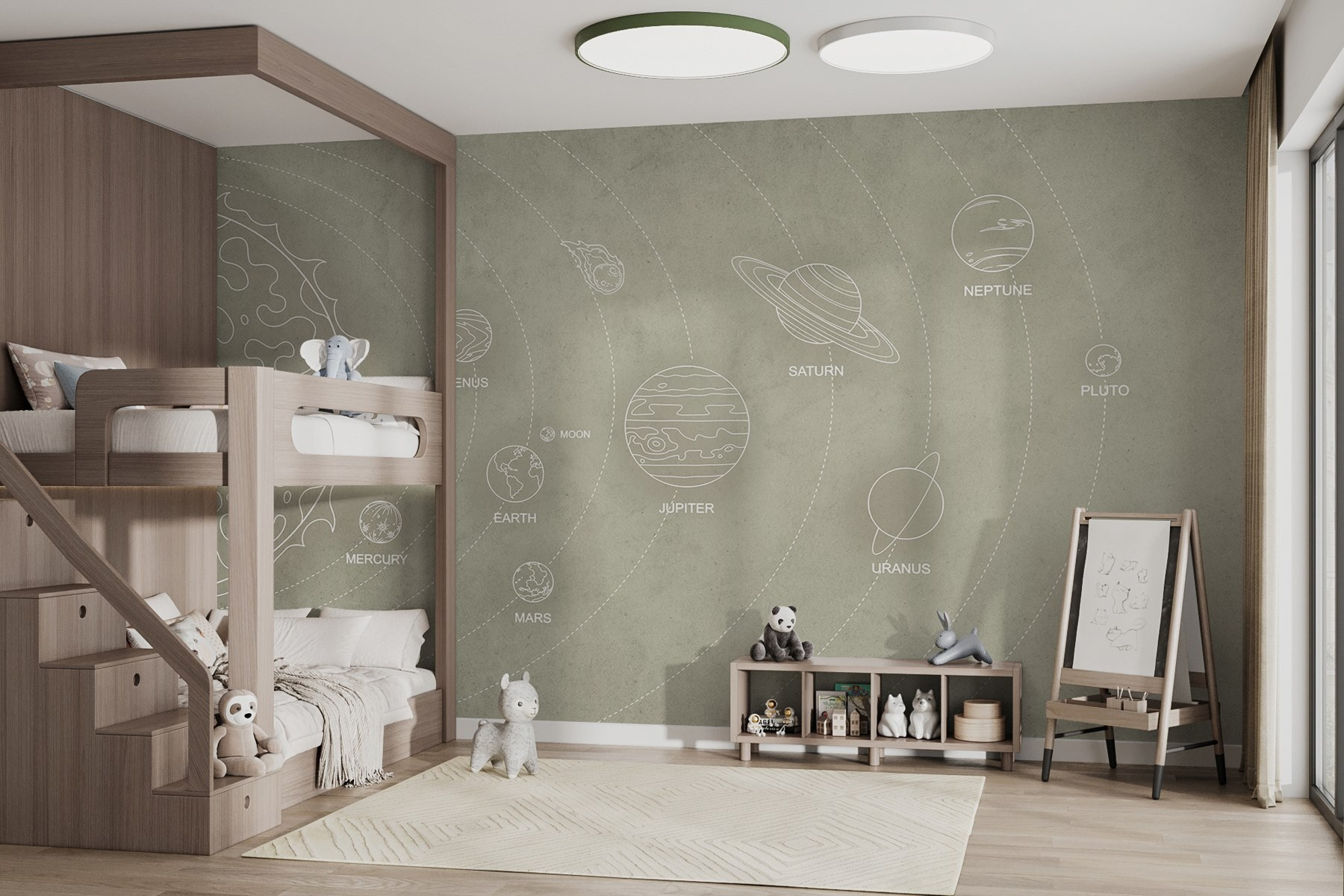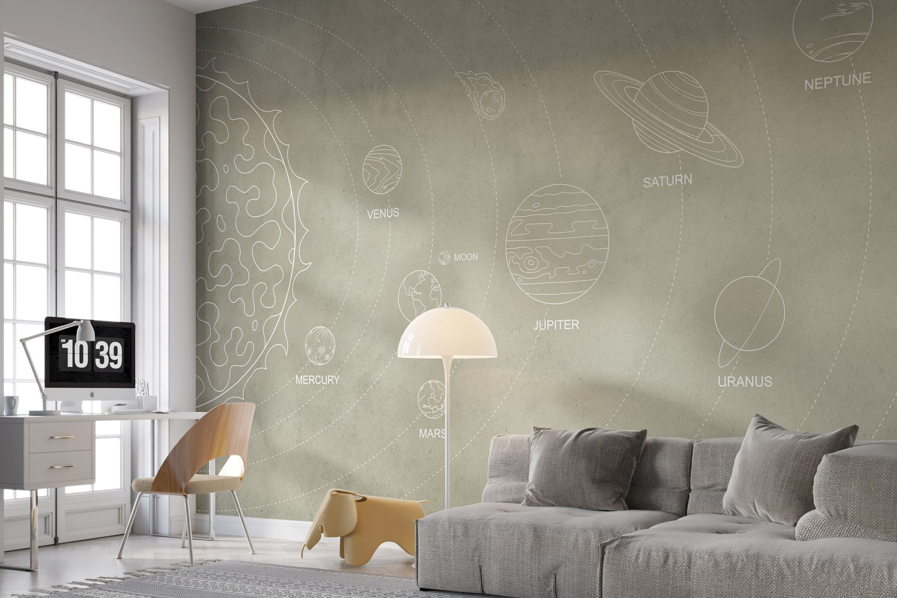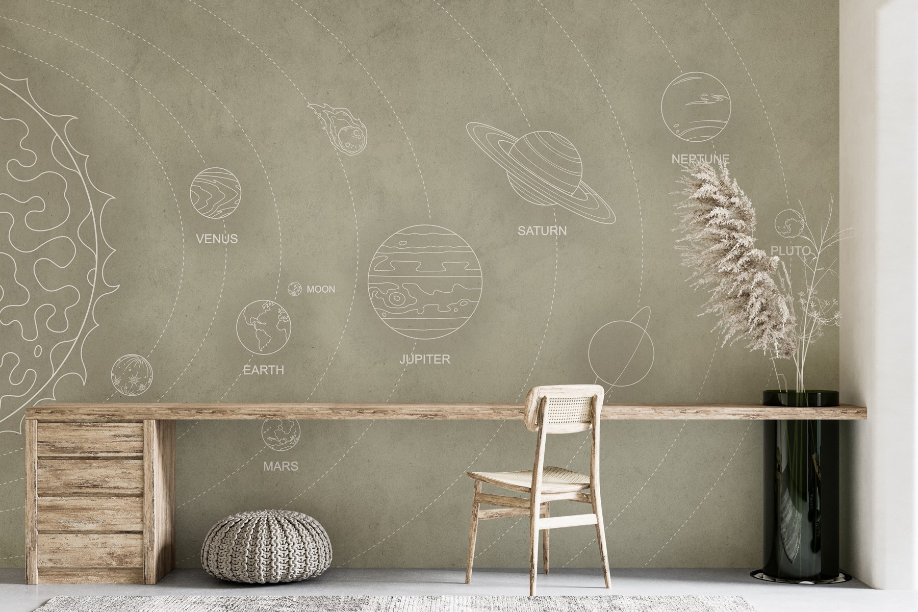 Transformați-vă spațiul într-un tărâm al minunilor cosmice cu această pictură murală “Diagrama planetelor”. Imaginați-vă că intrați într-o încăpere în care Mercur, Venus și chiar Pluto se relaxează pe perete ca și cum locul le-ar aparține. Este ca și cum ai avea un loc în primul rând în univers – fără a avea nevoie de o navă spațială! Liniile curate și tonurile liniștitoare ale acestei picturi murale o fac perfectă pentru un birou, o cameră de copil sau pentru orice alt loc care ar avea nevoie de un strop de magie celestă. Fie că sunteți pasionat de astronomie sau pur și simplu iubiți o atmosferă înstelată, această pictură murală stârnește curiozitatea și vă invită să visați cu ochii deschiși la galaxii îndepărtate. Imaginați-vă-i pe cei mici arătând spre Marte și întrebând dacă pot merge în vizită. Nu este doar decor; este un bilet către un univers al imaginației.