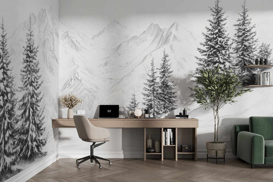 Transformați orice cameră într-o evadare senină cu această pictură murală uimitoare a unui lanț muntos înzăpezit. Imaginați-vă contemplând aceste vârfuri maiestuoase în timp ce vă relaxați cu o ceașcă de cacao – perfect pentru stimularea imaginației sau pentru declanșarea unui vis cu ochii deschiși. Detaliile complicate și tonurile moi aduc un sentiment de calm și uimire, ca o șoaptă blândă a naturii chiar în casa dvs. Nu este doar decor; este un bilet spre liniște. Fie că este vorba de o cameră de zi, un dormitor sau un birou, această pictură murală invită la pace și creativitate. Imaginați-vă – fiecare perete ar putea spune o poveste – un refugiu de iarnă confortabil vă așteaptă!