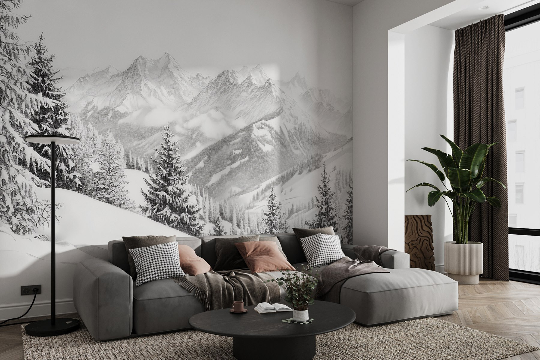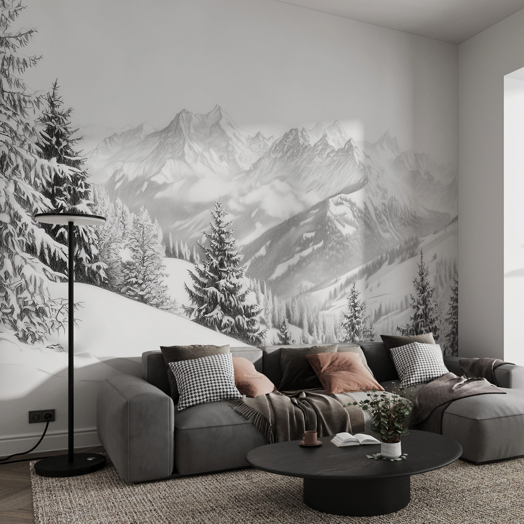 Transformați orice cameră într-o escapadă de iarnă senină cu această pictură murală uimitoare cu munți înzăpeziți și copaci maiestuoși. Imaginați-vă că vă relaxați cu o băutură caldă, contemplând peisajul uluitor care se simte la doar o șuetă distanță. Albul liniștit și griul moale evocă un calm care vă învăluie ca o pătură caldă – perfect pentru nopțile reci. Adăugați o notă de sălbăticie pereților dvs. și lăsați spațiul dvs. să respire aer proaspăt de munte. Ideală pentru iubitorii de natură și visătorii cu ochii deschiși deopotrivă, această pictură murală invită la gânduri pașnice și la un sentiment de aventură, chiar și de pe canapea.