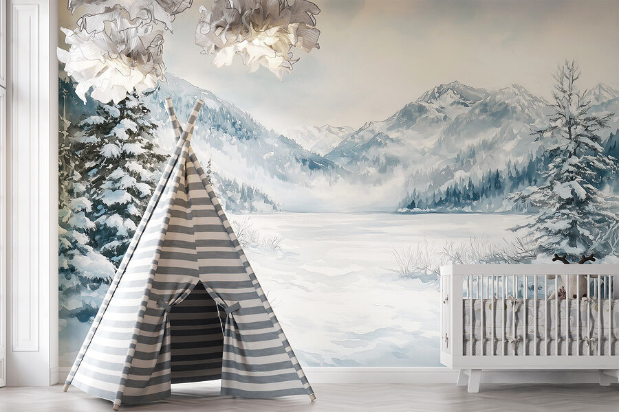 Transformați-vă spațiul într-un tărâm al minunilor de iarnă cu această pictură murală uimitoare care prezintă un peisaj înzăpezit, cu copaci și munți maiestuoși. Imaginați-vă sorbind cacao fierbinte în timp ce priviți scena senină – este ca și cum ați aduce liniștea unei escapade în zăpadă chiar în camera dvs. de zi. Nuanțele moi de alb și gri evocă o atmosferă confortabilă și liniștită, perfectă pentru relaxare după o zi lungă. Imaginați-vă această pictură murală ca fundal, stârnind conversații și visând cu ochii deschiși la aventuri înghețate. Cine are nevoie de cizme de zăpadă când acest mural creează atmosfera? Ideală pentru oricine dorește să îmbrățișeze frumusețea naturii fără frig!