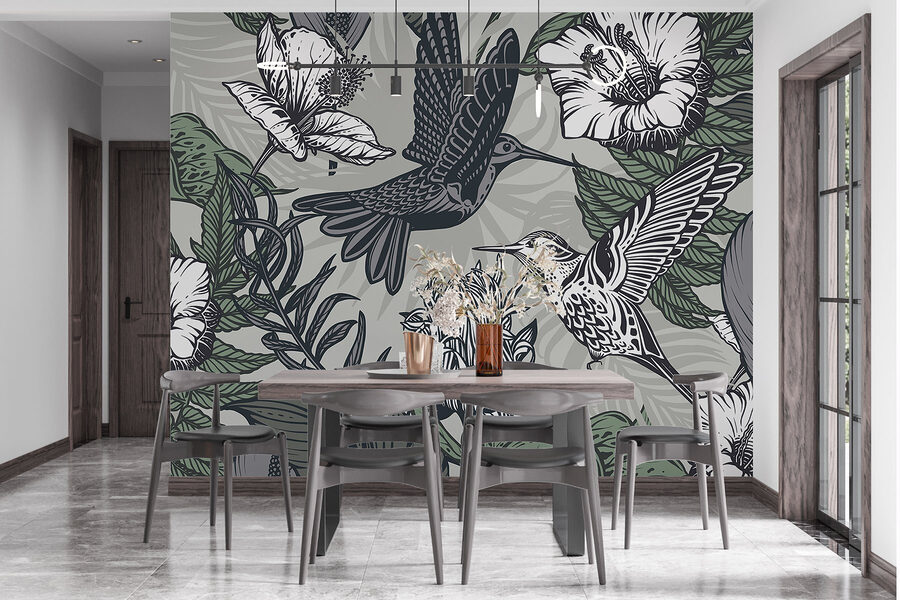 Transformați orice spațiu într-o evadare senină cu pictura murală “Pasăre zburând deasupra florilor”. Imaginați-vă acest lucru: păsări vibrante zburând grațios printre flora luxuriantă, înflorită, invitând natura chiar în casa dvs. Este ca și cum ai avea o bucățică de paradis pe perete – cine nu și-ar dori asta?