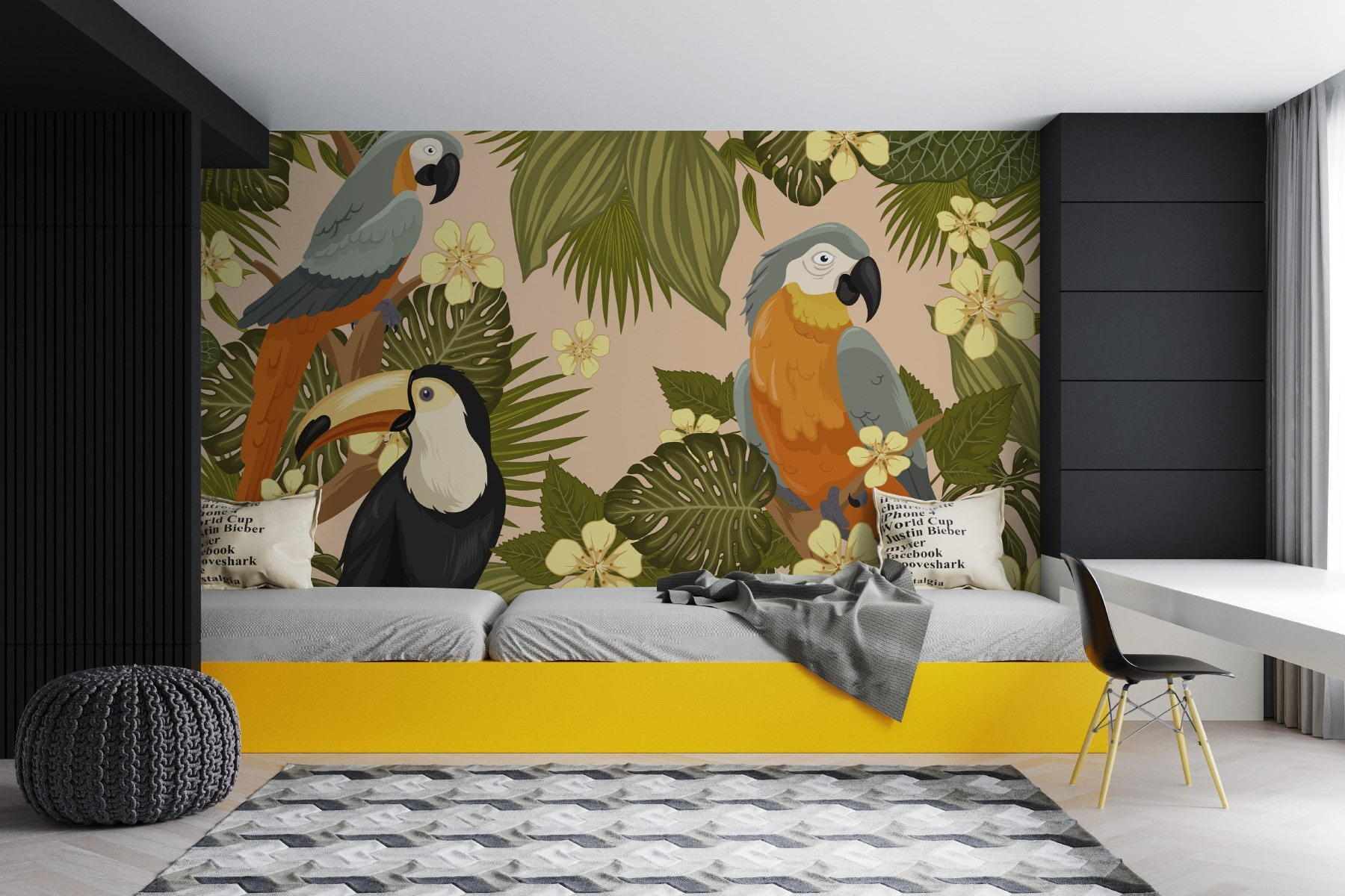 Aduceți o atingere a tropicelor în spațiul dvs. cu această pictură murală vibrantă cu păsări pline de viață cocoțate pe o ramură cu frunze. Imaginați-vă că pășiți într-o junglă în loc de camera dvs. de zi – acele macaws colorate și tucani veseli ies practic din perete! Amestecul jucăuș de verde și galben adaugă căldură, făcând orice cameră să se simtă primitoare și plină de viață. Este ca și cum ai avea un mini paradis acasă, fără umiditate. Perfect pentru cei care doresc un strop de natură fără insecte. Gândiți-vă doar la complimentele prietenilor și la acele vibrații instantanee de vacanță! Pereții tăi merită această mică evadare.