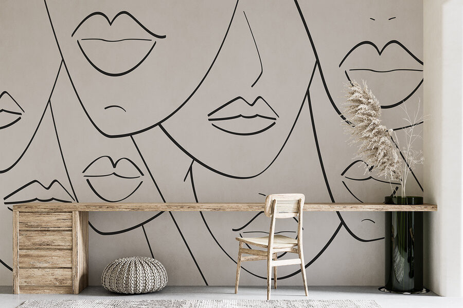 Transformați-vă spațiul cu această pictură murală captivantă care prezintă un grup de fețe abstracte, fiecare cu buze desenate în mod unic în alb și negru. Nu este doar un decor; este un starter de conversație. Imaginați-vă că intrați într-o cameră și sunteți întâmpinați de aceste expresii intrigante, fiecare spunând o poveste diferită – care este vibrația lor, ce secrete au?