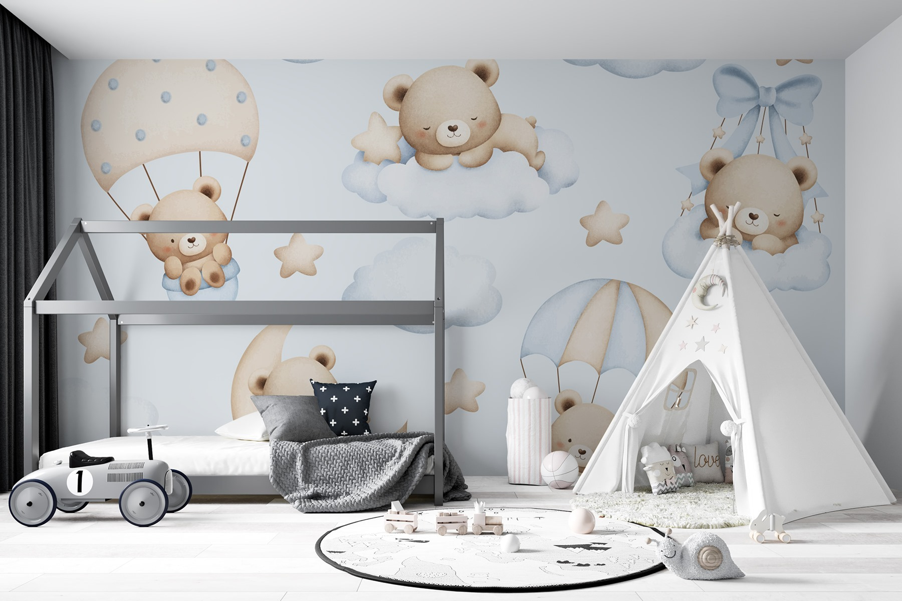 Transformați orice cameră într-un tărâm al minunilor confortabil cu această pictură murală adorabilă cu ursuleți fermecători plutind pe nori. Serios, cine nu și-ar dori ca micii prieteni ursuleți să se parașuteze în spațiul lor? Perfectă pentru grădinițe sau camere de joacă, aceasta aduce un sentiment de calm și bucurie, ca și cum fiecare urs ar fi într-o aventură blândă. Imaginați-vă chicotelile dulci și poveștile de culcare care vor pluti sub aceste scene pufoase. Nu este doar o pictură murală; este un bilet către un tărâm de vis unde domnesc îmbrățișările și râsetele. Așadar, luați o cacao fierbinte și lăsați vibrațiile drăgălașe să vă înconjoare!