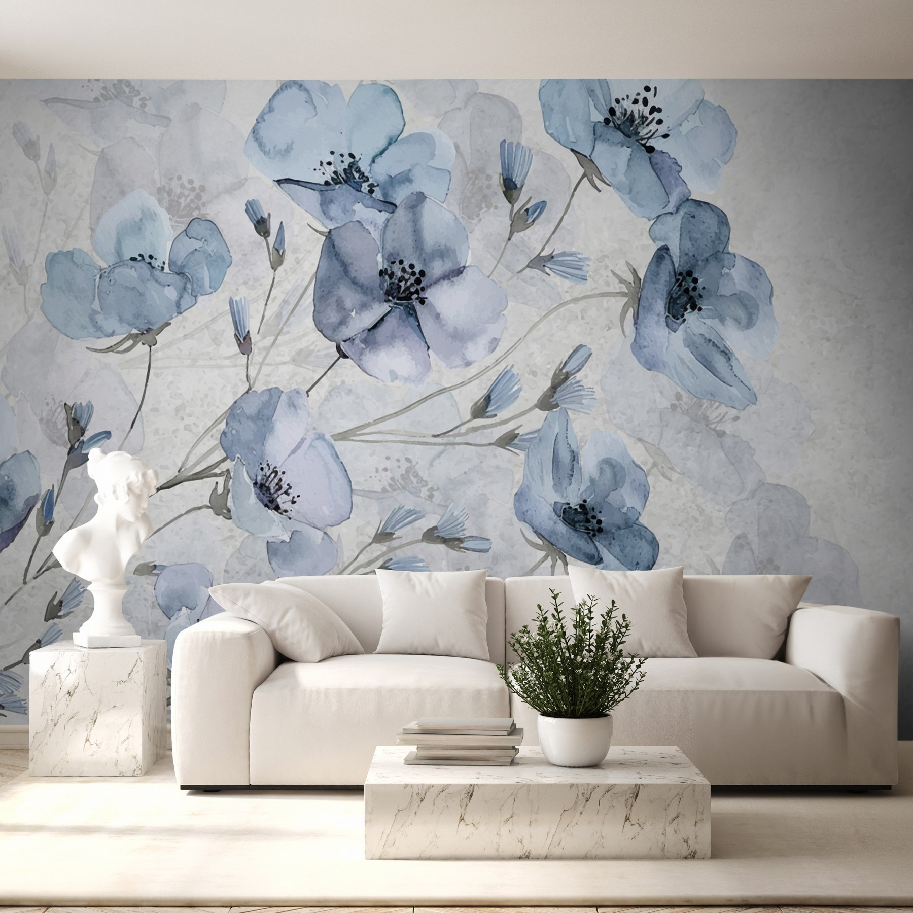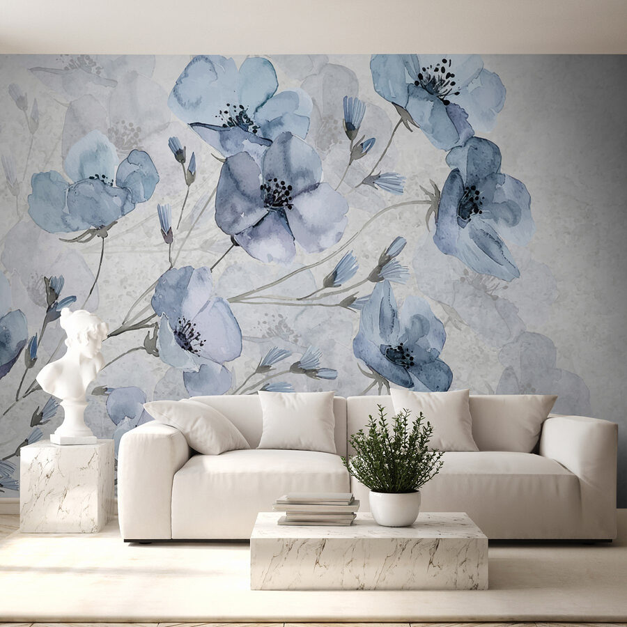Imaginați-vă că pășiți într-o cameră în care flori delicate plutesc ușor pe pereți, șoptindu-vă povești suave despre frumusețea naturii. “Flori delicate în nuanțe blânde” este ca un vis de zi senin pictat în acuarelă, invitându-i pe toți cei care intră să se oprească și să respire. Albastrul blând și griurile subtile încurajează o atmosferă calmă – perfectă pentru a sorbi un ceai și a medita la misterele vieții. Este greu să nu zâmbești la modul în care aceste flori par să danseze, chiar și în liniște. Transformați un spațiu din obișnuit în extraordinar, aducând exteriorul în interior, și priviți cum oaspeții se simt ca acasă în această îmbrățișare florală. Puțină artă poate schimba într-adevăr totul!