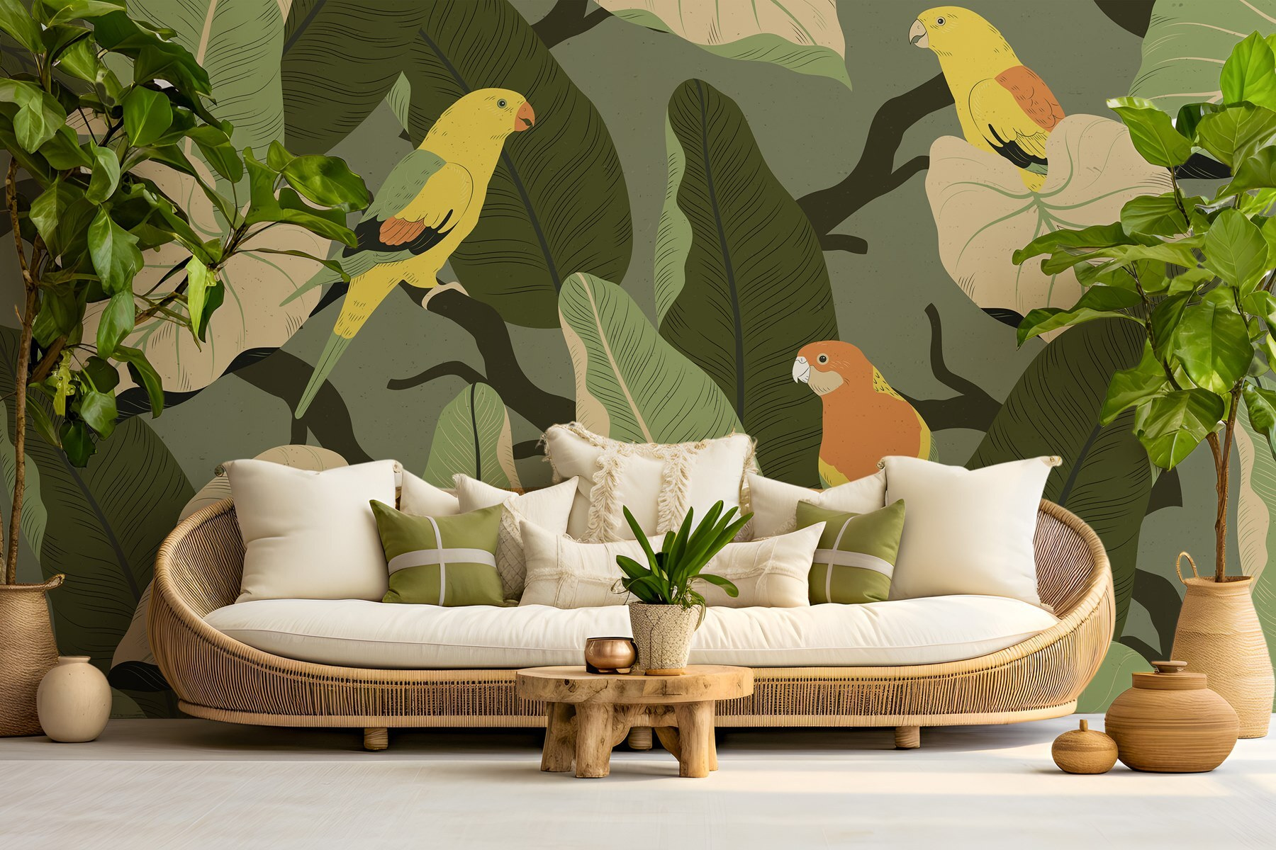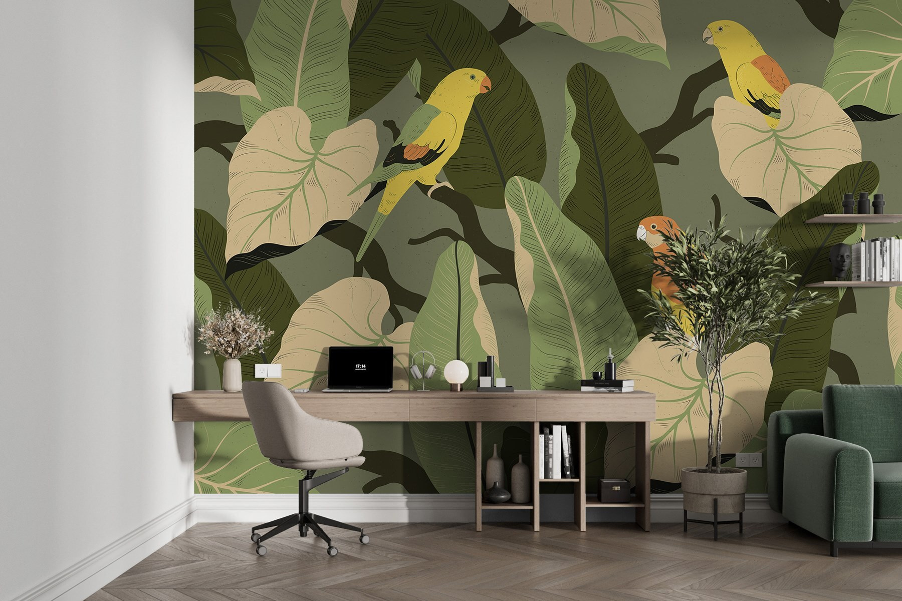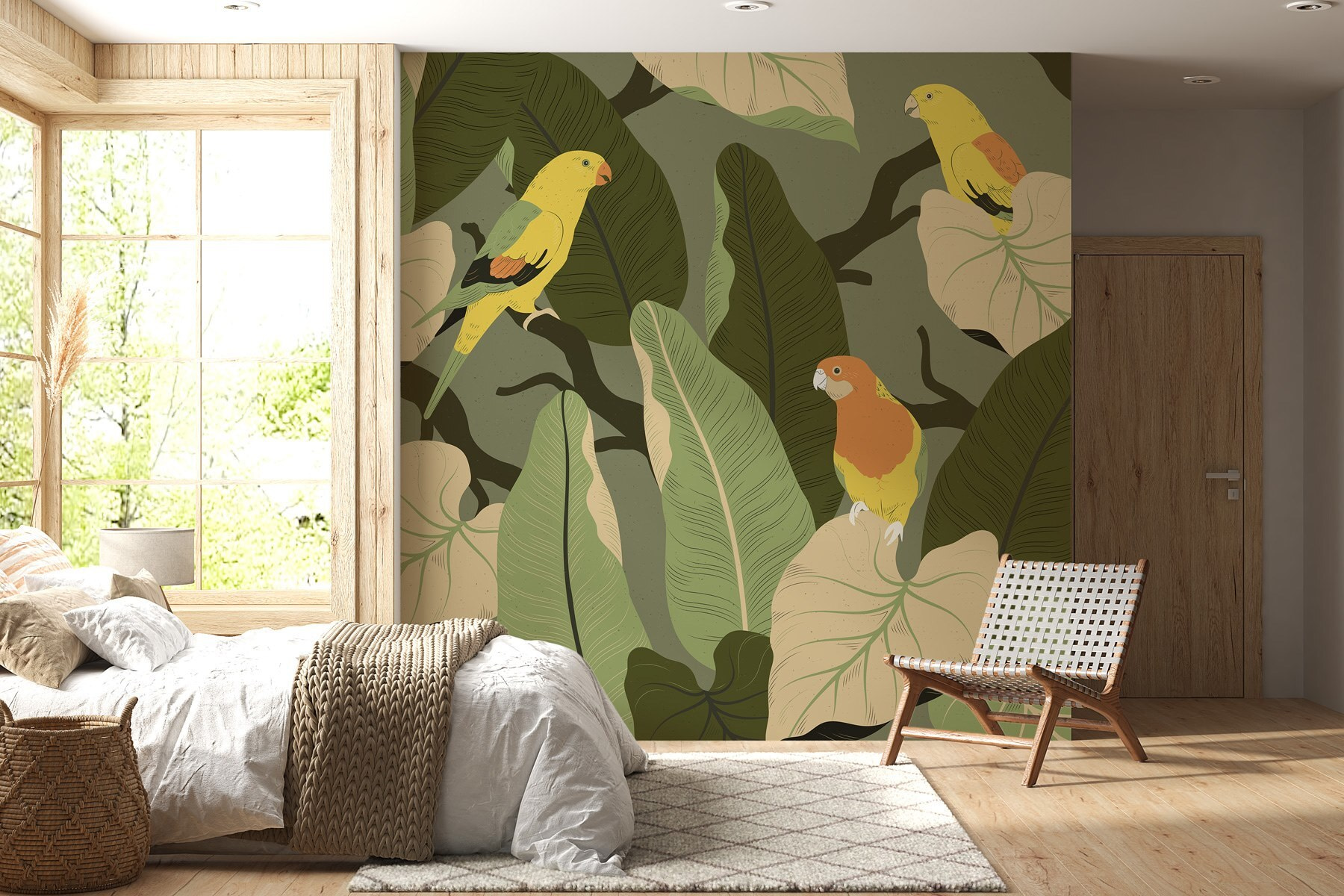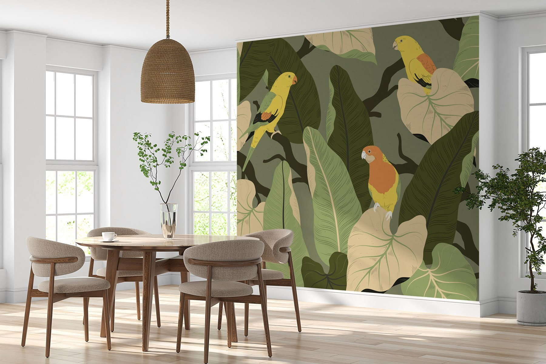 Transformați orice spațiu într-un paradis luxuriant cu această pictură murală vibrantă de păsări colorate cocoțate pe ramuri cu frunze! Imaginați-vă că pășiți într-o cameră în care vibrațiile tropicale curg ca o briză blândă. Acești prieteni veseli cu pene par să cânte, invitându-vă să vă opriți și să vă bucurați de frumusețea din jurul lor. Perfectă pentru un colț de lectură sau o zonă de luat masa plină de viață, această pictură murală aduce un strop de natură în interior, fără a fi nevoie de un deget verde! În plus, este un starter de conversație, stârnind povești despre călătorii în locuri exotice. Cine nu și-ar dori să se trezească înconjurat de un astfel de farmec? Este ca o mini-vacanță chiar la tine acasă!