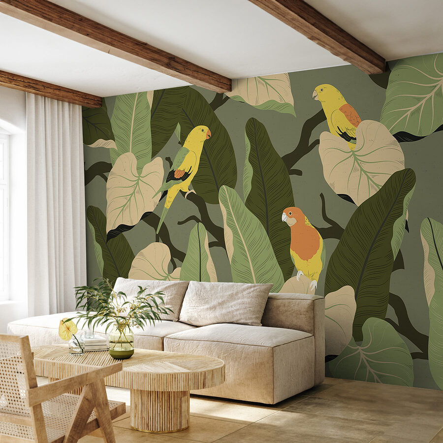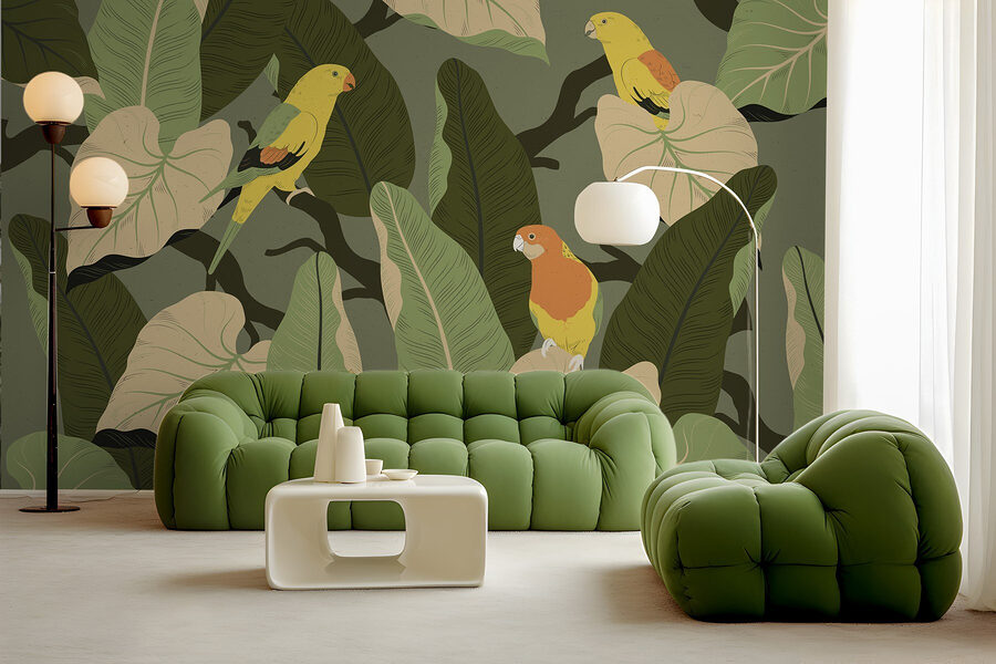 Transformați orice spațiu într-un paradis luxuriant cu această pictură murală vibrantă de păsări colorate cocoțate pe ramuri cu frunze! Imaginați-vă că pășiți într-o cameră în care vibrațiile tropicale curg ca o briză blândă. Acești prieteni veseli cu pene par să cânte, invitându-vă să vă opriți și să vă bucurați de frumusețea din jurul lor. Perfectă pentru un colț de lectură sau o zonă de luat masa plină de viață, această pictură murală aduce un strop de natură în interior, fără a fi nevoie de un deget verde! În plus, este un starter de conversație, stârnind povești despre călătorii în locuri exotice. Cine nu și-ar dori să se trezească înconjurat de un astfel de farmec? Este ca o mini-vacanță chiar la tine acasă!