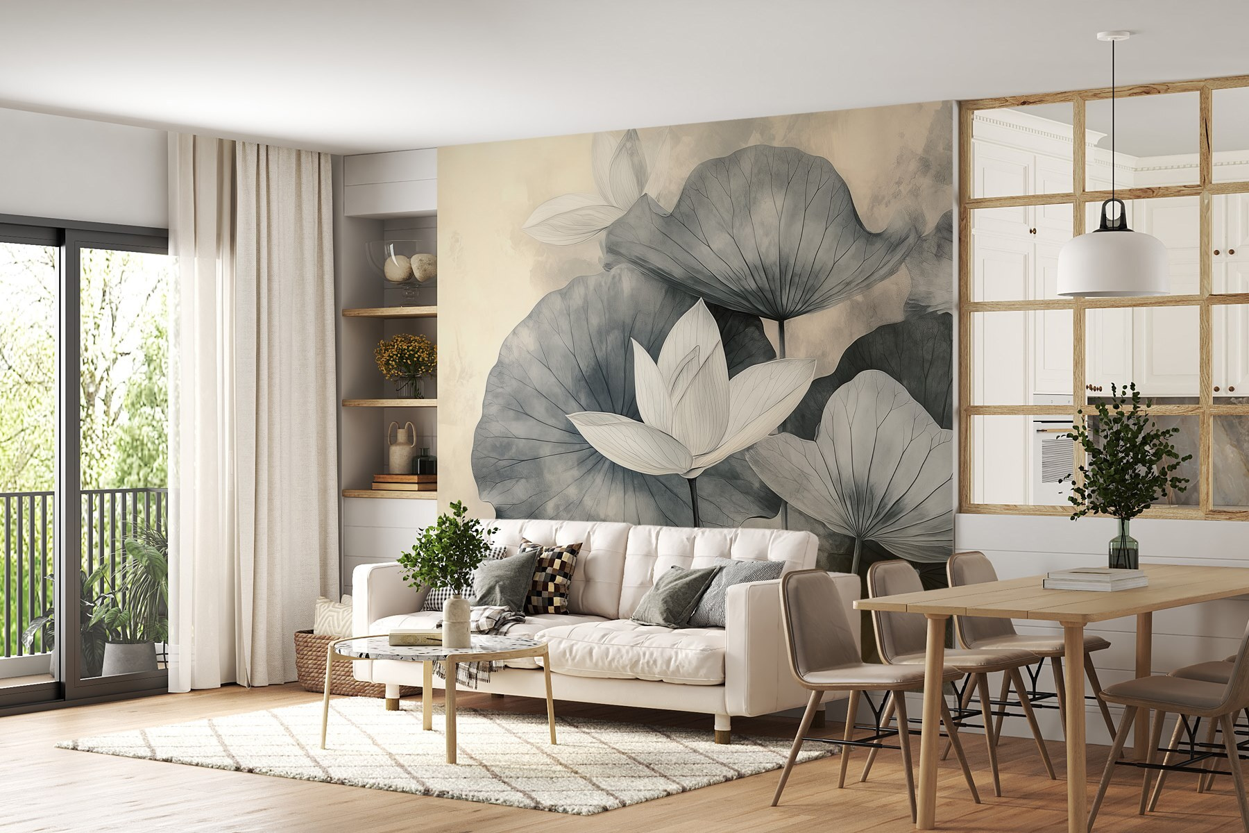 Transformați orice perete într-o evadare liniștită cu pictura murală “Serene Lotus in Gentle Hues”. Imaginați-vă că pășiți într-o oază de calm de fiecare dată când intrați în cameră. Nuanțele blânde și florile delicate de lotus șoptesc relaxare și pace – perfecte pentru a crea un colț de lectură confortabil sau un spațiu de meditație senin. Imaginați-vă sorbind ceai sau scufundându-vă într-o carte bună în timp ce nuanțele blânde vă învăluie în confort. În plus, este un starter de conversație fabulos! Prietenii te vor întreba unde ai găsit această frumusețe, iar tu vei zâmbi – pentru că acum face parte din atmosfera confortabilă a casei tale. Este mai mult decât o pictură murală; este o stare de spirit!
