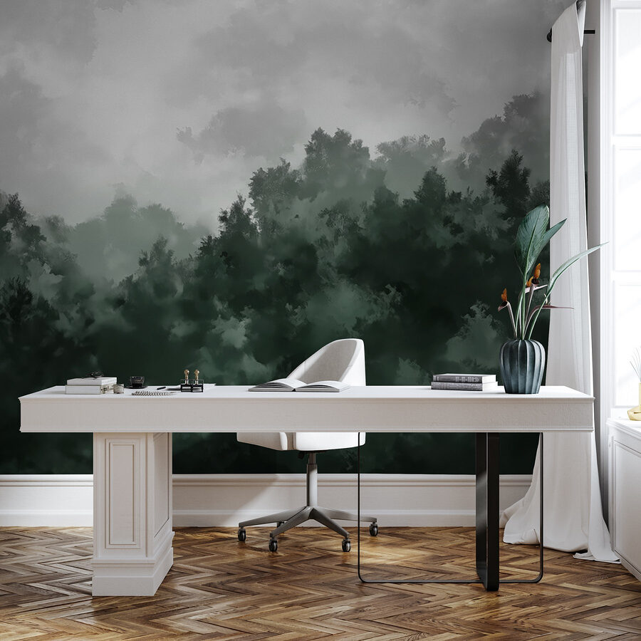 Transformați orice încăpere într-o evadare senină cu această uimitoare pictură murală “Foggy Forest”. Imaginați-vă că intrați în spațiul dvs. și sunteți întâmpinați de șoaptele blânde ale copacilor învăluiți în ceață. Este ca și cum ați păși într-o sălbăticie confortabilă, unde fiecare privire invită la liniște. Verdele intens și griul moale creează o ambianță liniștitoare, perfectă pentru relaxare după o zi lungă. Sau imaginați-vă o întâlnire cu prietenii – această pictură murală va stârni conversații despre frumusețea naturii. Este mai mult decât un decor; este o atmosferă. Aduceți o notă de aer liber în interior și lăsați pereții să respire viață!