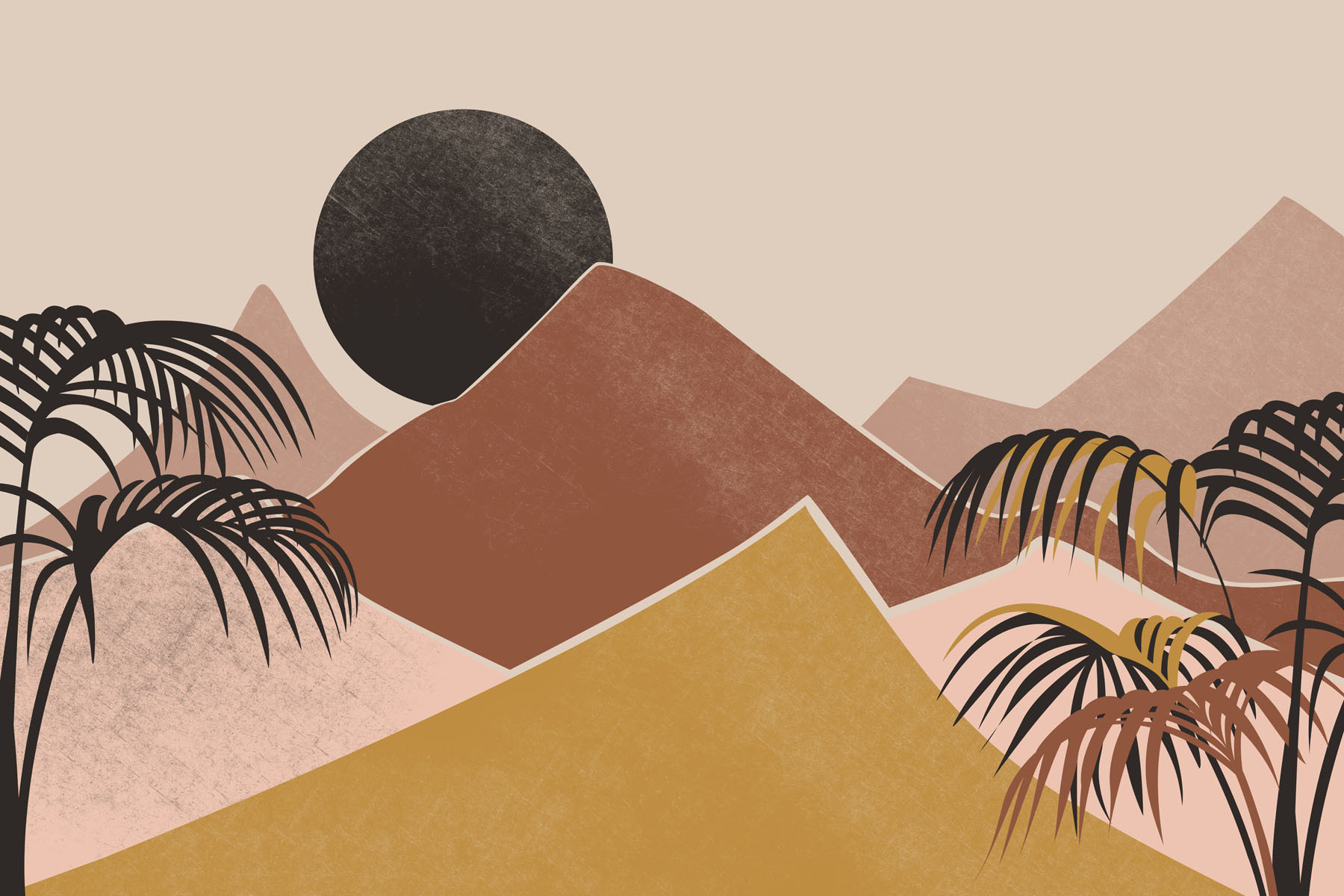Transformați orice cameră cu această pictură murală uimitoare, “Peisaj cu palmieri și munți”. Imaginați-vă că pășiți într-o evadare confortabilă de fiecare dată când vă uitați la ea. Tonurile calde, pământii, combinate cu siluetele palmierilor care se leagănă, îl fac un fundal perfect pentru visele cu ochii deschiși la locuri îndepărtate. Această pictură murală șoptește “vibrații de vacanță” și face minuni într-o cameră de zi, într-un dormitor sau chiar într-un colț creativ. Se simte ca o îmbrățișare blândă din partea naturii, chiar la ea acasă. În plus, acești munți promit aventuri fără a părăsi vreodată canapeaua – cine ar putea rezista?