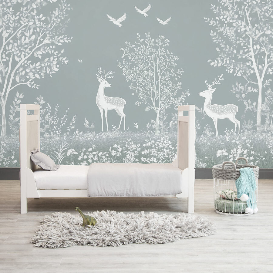 Transformați spațiul dvs. într-o evadare senină cu această pictură murală încântătoare cu căprioare albe grațioase care se plimbă într-o pădure moale, cu frunze. Imaginați-vă că pășiți în camera dvs. și vă simțiți ca și cum v-ați rătăcit într-o pădure de vis, plină de șoapte blânde ale naturii. Păsările delicate care zboară deasupra adaugă o notă de fantezie, fiind un fundal perfect pentru serile confortabile sau diminețile pline de inspirație. Este ca și cum ai avea un refugiu liniștit chiar la tine acasă! Fie că sorbiți un ceai sau citiți o carte, această pictură murală invită la acele mici momente dulci de calm. În plus, este un bun început de conversație – cine nu ar vrea să vorbească despre pădurea sa secretă?