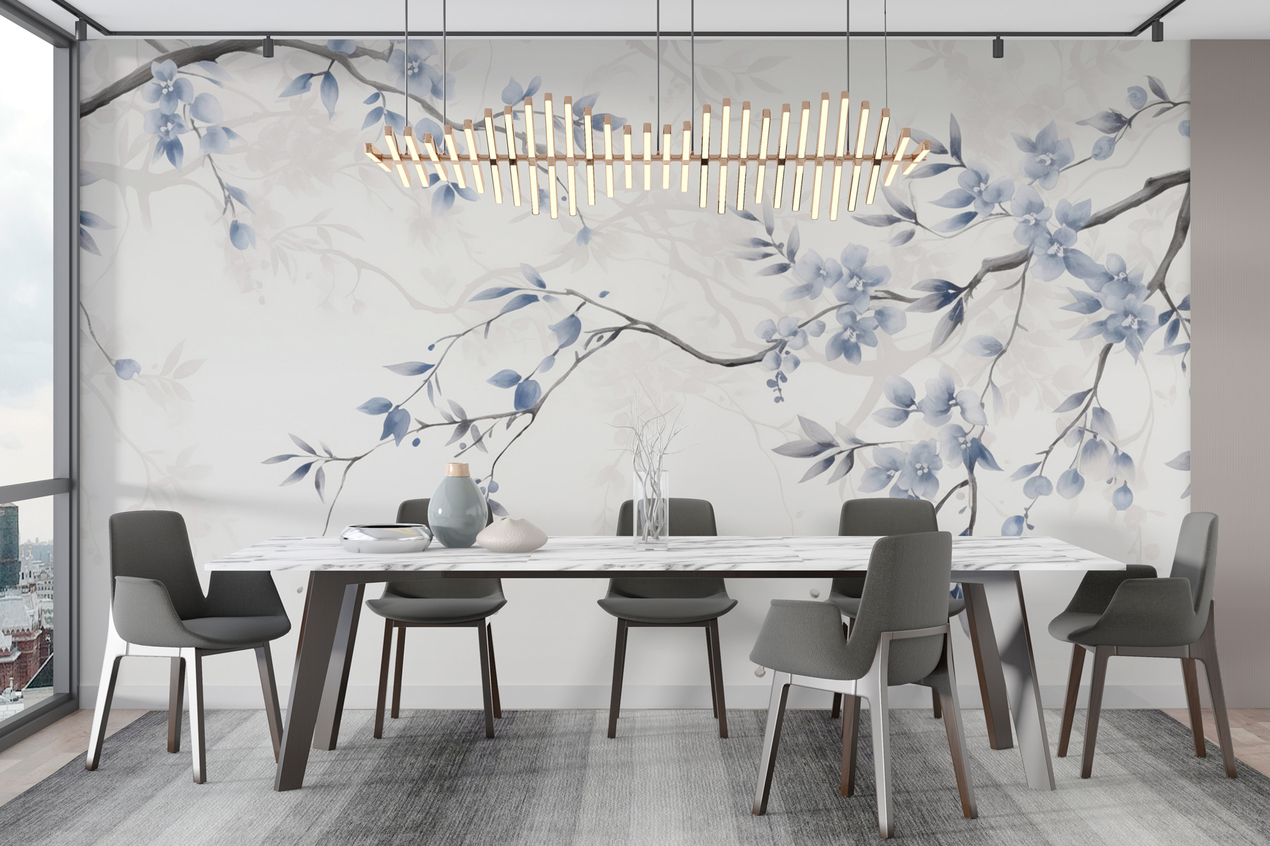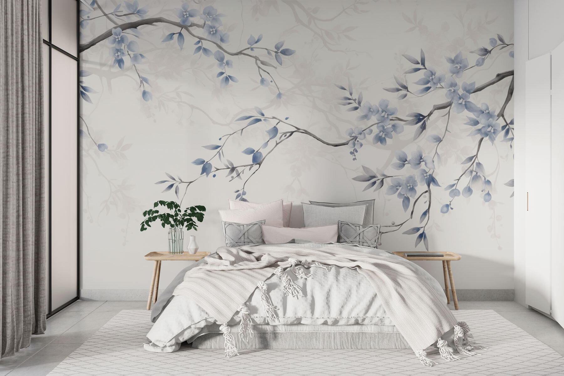 Transformați-vă spațiul cu această pictură murală încântătoare, “Creangă cu flori și frunze albastre”. Imaginați-vă că pășiți în fiecare zi într-o grădină japoneză senină – calmă, liniștită și puțin magică. Florile moi de acuarelă se leagănă ușor, ca și cum ar șopti secrete ale naturii. Perfectă pentru un colț de lectură confortabil sau un colț de bucătărie luminos, această pictură murală invită la visări încântătoare. Imaginați-vă o cafea de dimineață înconjurată de aceste minunate nuanțe de albastru. Este ca și cum ai aduce o gură de aer proaspăt în interior, făcând din fiecare privire o mică evadare. Adăugați-o în casa dvs. și lăsați frumusețea naturii să vă reamintească să vă opriți și să apreciați lucrurile mărunte.