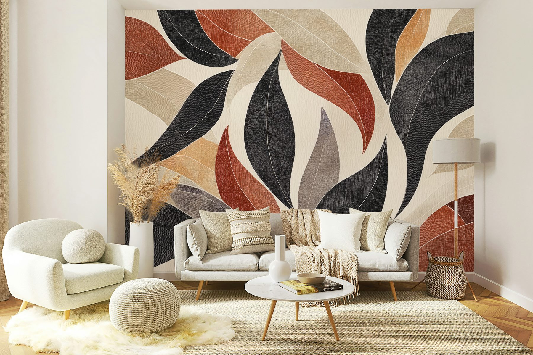 Transformați-vă spațiul cu pictura murală “Frunze dinamice în tonuri pământii”! Acest design uimitor se învârte cu roșu bogat, negru cald și crem moale – perfect pentru a da viață oricărui perete. Imaginați-vă sorbind un ceai și privind pur și simplu aceste frunze, lăsând vibrațiile pământii să vă cuprindă. Este ca o ușoară amintire a frumuseții naturii, chiar la tine acasă. Perfect pentru un colț de lectură confortabil sau pentru acel perete gol care cere atenție. În plus, putem vorbi despre modul în care face ca orice cameră să pară mai primitoare? Decorul inspirat de natură nu poate fi mai bun decât acesta!
