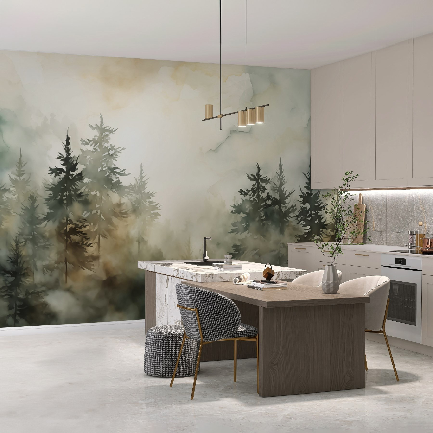 Transformați-vă spațiul cu pictura murală încântătoare “Pădure cețoasă cu copaci”. Imaginați-vă că vă treziți în fiecare zi într-o scenă senină de pădure, ceața învârtindu-se în jurul copacilor care par să șoptească secrete din natură. Această pictură murală vă învăluie camera într-o aură liniștită, făcând-o o retragere confortabilă din agitație. Perfectă pentru acele zile în care lumea exterioară pare prea zgomotoasă. Este ca și cum ai păși într-o evadare de vis de fiecare dată când te uiți la ea. Fie că găzduiți prieteni sau doar vă bucurați de un moment de liniște cu o carte, această pictură murală aduce o notă de magie și calm pe orice perete, îmbinându-se fără efort cu diferite stiluri de decor.
