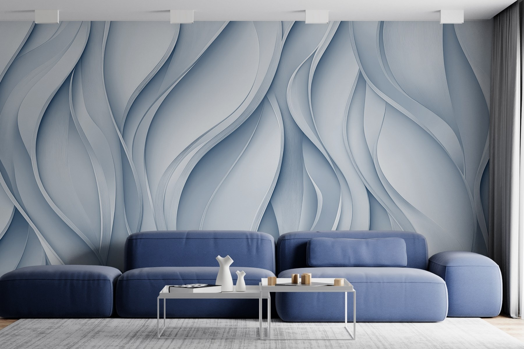 Fototapet Linii ondulate albe și gri (SKU: w02509)