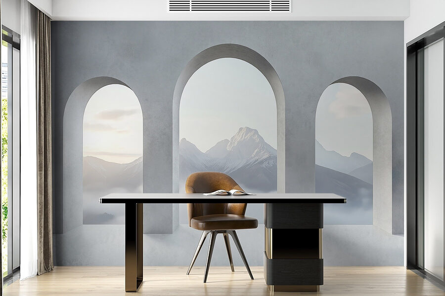 Transformați orice spațiu cu această pictură murală uimitoare care se simte ca o evadare confortabilă în natură. Imaginați-vă că vă treziți, cu cafeaua în mână, în timp ce priviți prin ferestrele arcuite elegante munții maiestuoși, învăluiți ușor în ceață. Este ca și cum ai aduce liniștea naturii în sufrageria ta – fără să ai nevoie de cizme de drumeție! Fie că este vorba de un colț de lectură liniștit sau de o zonă de lounge deschisă, această pictură murală adaugă o gură de aer proaspăt. Așadar, de ce să nu lăsați munții să inspire visări cu ochii deschiși și momente liniștite? Este natura în cea mai bună formă – nu este nevoie de cremă de protecție solară!