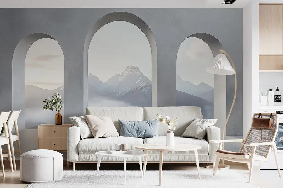Transformați orice spațiu cu această pictură murală uimitoare care se simte ca o evadare confortabilă în natură. Imaginați-vă că vă treziți, cu cafeaua în mână, în timp ce priviți prin ferestrele arcuite elegante munții maiestuoși, învăluiți ușor în ceață. Este ca și cum ai aduce liniștea naturii în sufrageria ta – fără să ai nevoie de cizme de drumeție! Fie că este vorba de un colț de lectură liniștit sau de o zonă de lounge deschisă, această pictură murală adaugă o gură de aer proaspăt. Așadar, de ce să nu lăsați munții să inspire visări cu ochii deschiși și momente liniștite? Este natura în cea mai bună formă – nu este nevoie de cremă de protecție solară!