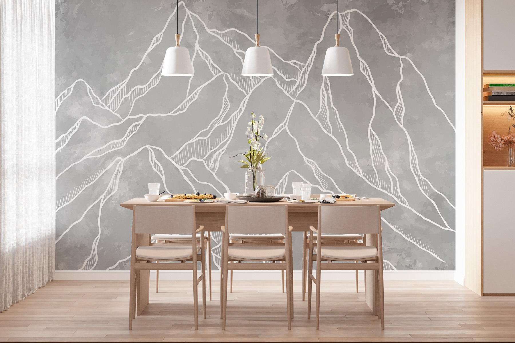 Imaginați-vă că intrați într-o cameră și simțiți că tocmai ați pășit într-un lanț muntos senin. Această pictură murală, cu conturul său grațios și abstract al vârfurilor, aduce un aer de liniște în orice spațiu. Perfectă pentru a crea un fundal liniștitor într-un dormitor sau pentru a adăuga ceva farmec unui living confortabil, aceasta invită la visări cu ochii deschiși la drumeții montane și la brize răcoroase. Griurile și alburile moi se îmbină armonios cu orice decor, făcând-o versatilă, dar uimitoare. Este ca și cum ai avea o bucată de natură chiar pe perete – cine nu și-ar dori asta? Pictura murală șoptește aventură, în timp ce înrădăcinează camera în vibrații pașnice. Perfectă pentru cei care caută un amestec de creativitate și calm. Ce să nu vă placă?