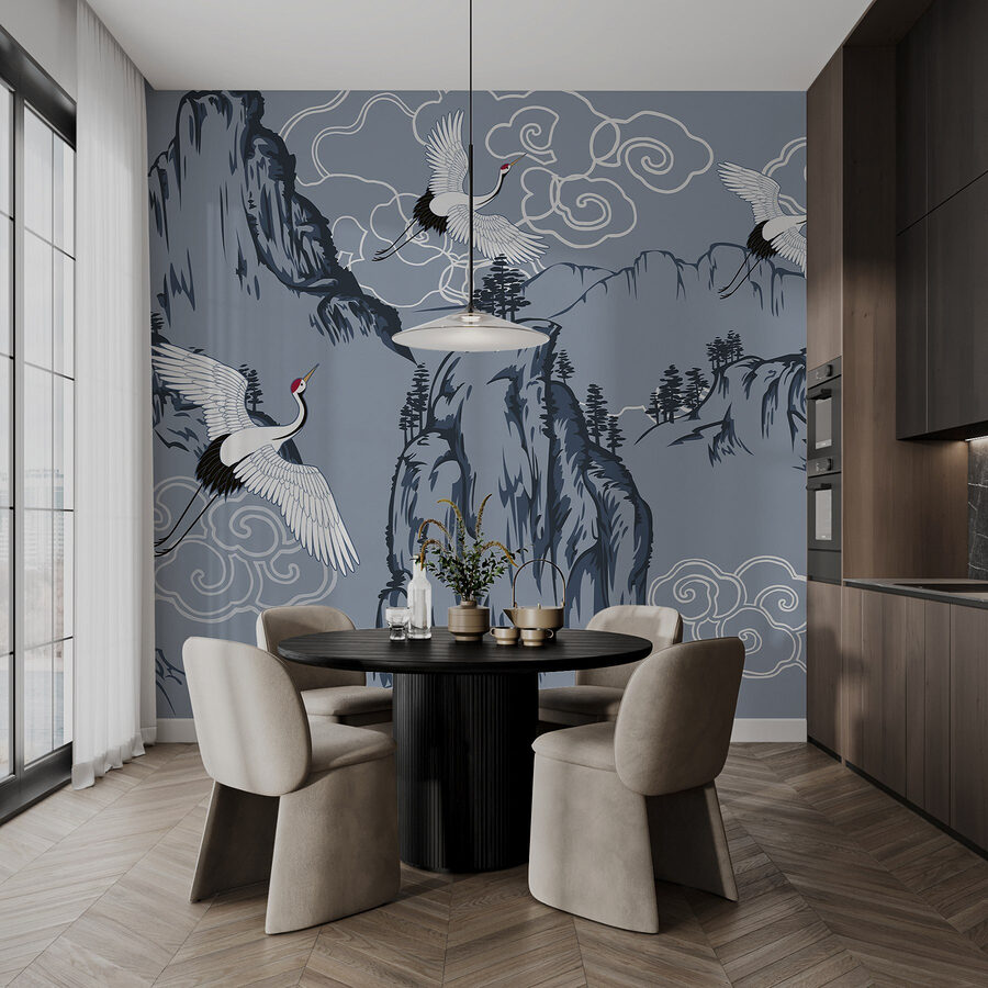 Transformați-vă spațiul într-o evadare senină cu această pictură murală uimitoare, care prezintă păsări grațioase înălțându-se deasupra munților maiestuoși. Este ca și cum ai aduce un pic de natură în interior, fără tot polenul. Imaginați-vă sorbindu-vă cafeaua de dimineață în timp ce vă simțiți ca pe un vârf de munte liniștit – fără cizme de drumeție. Culorile moi și detaliile complicate invită la calm, fiind perfecte pentru un colț de lectură confortabil sau un dormitor liniștit. În plus, stârnește conversații! Oaspeții vor fi curioși cu privire la aceste cocori elegante, iar tu vei avea povestea perfectă pregătită. Este mai mult decât un simplu decor; este o mică felie de zen pentru peretele tău. Reîmprospătează-ți camera și lasă-ți pereții să șoptească povești din aer liber!