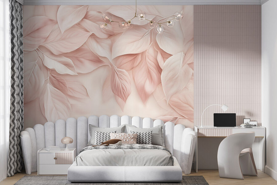 Transformarea unui spațiu poate fi la fel de simplă ca adăugarea unei note de natură, iar “Soft Hues of Delicate Leaves” face exact asta. Paleta blândă de culori pastelate a acestei picturi murale aduce o atmosferă senină – perfectă pentru a visa cu ochii deschiși sau pentru a sorbi un ceai în timp ce vă încolăciți cu o carte. Imaginați-vă că intrați într-o cameră și simțiți că ați nimerit într-o poiană liniștită din pădure. Frunzele, atât de elegant detaliate, par să șoptească cuvinte dulci de liniște. Este ca și cum ai avea o bucățică de natură în interior, fără insectele enervante. Perfect pentru cei care adoră prospețimea fără atâta agitație – cine nu și-ar dori o evadare liniștitoare acasă?