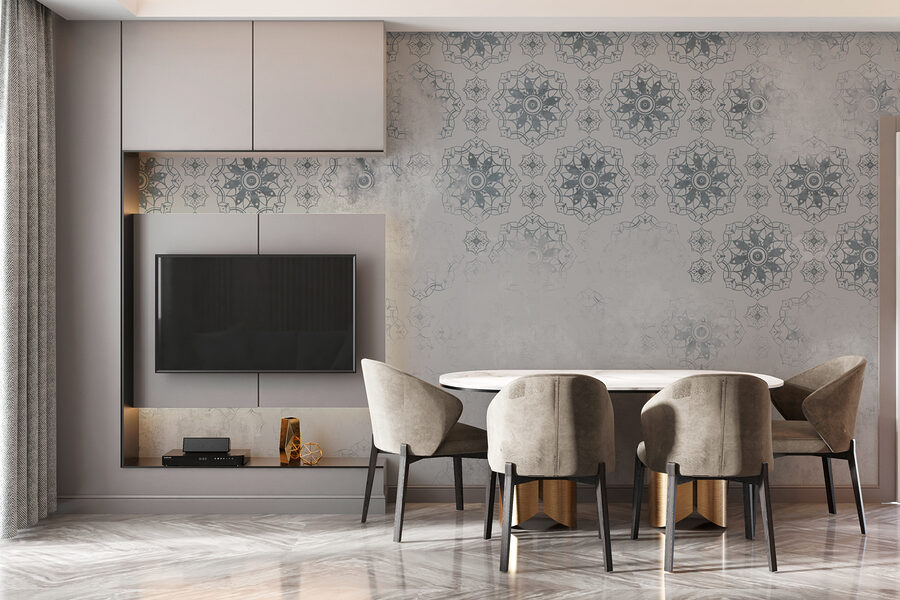 Transformați-vă spațiul într-un sanctuar senin cu această uimitoare pictură murală gri și albă. Modelul complicat țese o tapiserie de calm, făcând orice cameră să se simtă ca un refugiu confortabil. Imaginați-vă sorbind ceai, înfășurat într-o pătură moale, în timp ce tonurile atenuate creează fundalul perfect pentru acele conversații profunde, pline de suflet. Este ca și cum ai avea o piesă de artă care dă viață pereților tăi, dar care nu strigă după atenție. În plus, este versatilă – se potrivește perfect într-un loft la modă sau într-o casă clasică. Cine ar fi crezut că o pictură murală poate stârni atâta bucurie? Îmbrățișați vibrațiile!