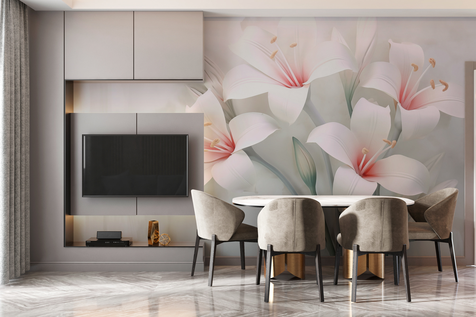 Perfectă pentru sufragerii confortabile sau dormitoare liniștite, această pictură murală adaugă o notă de blândețe care sporește instantaneu atmosfera. Imaginați-vă că vă relaxați cu o carte, înconjurați de aceste flori minunate, în timp ce o briză ușoară aduce aer proaspăt. Este genul de fundal care ar putea inspira câteva vise cu ochii deschiși. Serios, cine nu și-ar dori o astfel de ambianță?