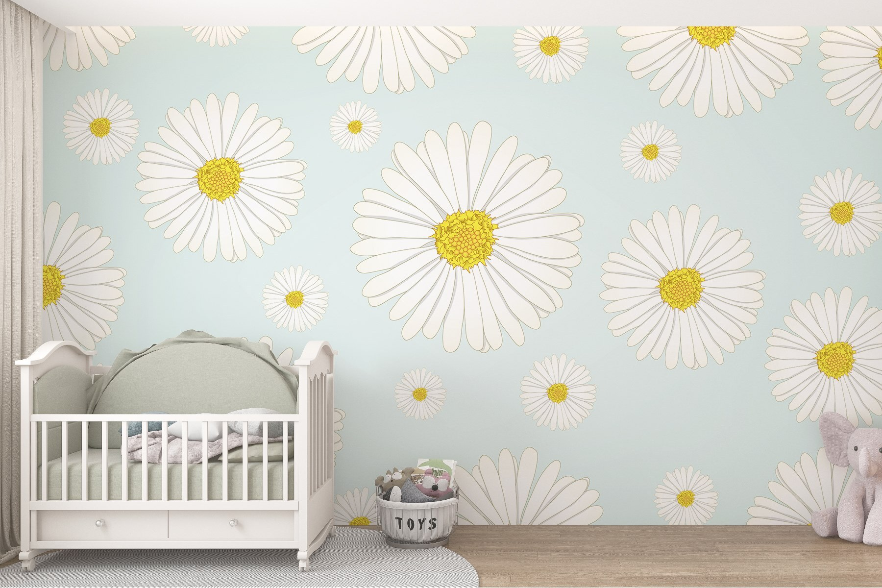 Transformați orice cameră într-o escapadă însorită cu această pictură murală încântătoare de flori albe și galbene. Imaginați-vă că intrați în spațiul dvs. și simțiți că ați pășit direct într-o grădină înflorită. Margaretele vesele sunt perfecte pentru a înveseli un colțișor confortabil sau pentru a adăuga căldură unei zone de zi.