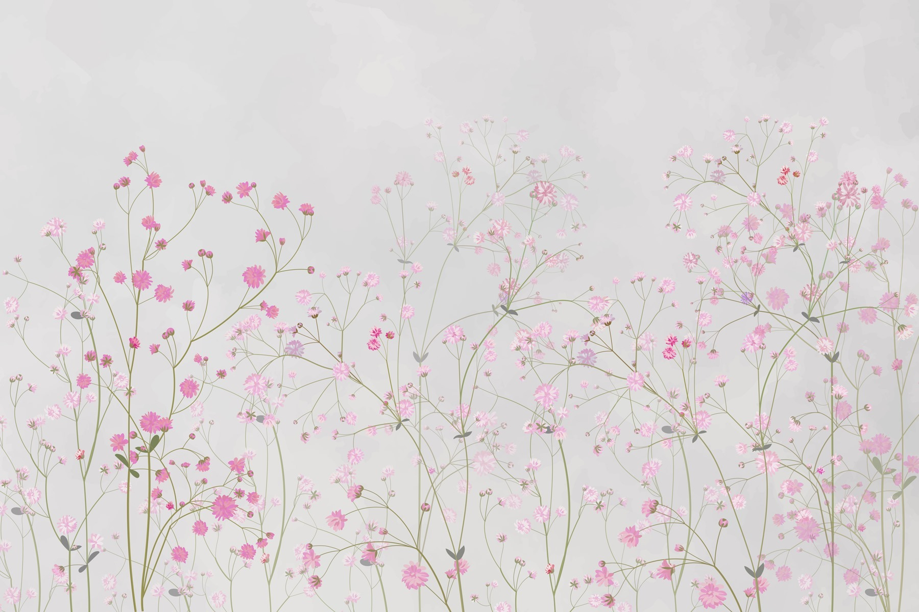 Transformați-vă spațiul cu această pictură murală încântătoare cu un grup capricios de flori roz. Imaginați-vă că intrați într-o cameră în care florile blânde vă întâmpină, înveselind atmosfera ca o îmbrățișare caldă. Perfectă pentru un colț de lectură confortabil sau o bucătărie veselă, aduce o notă de natură în interior fără a fi nevoie de un deget verde.