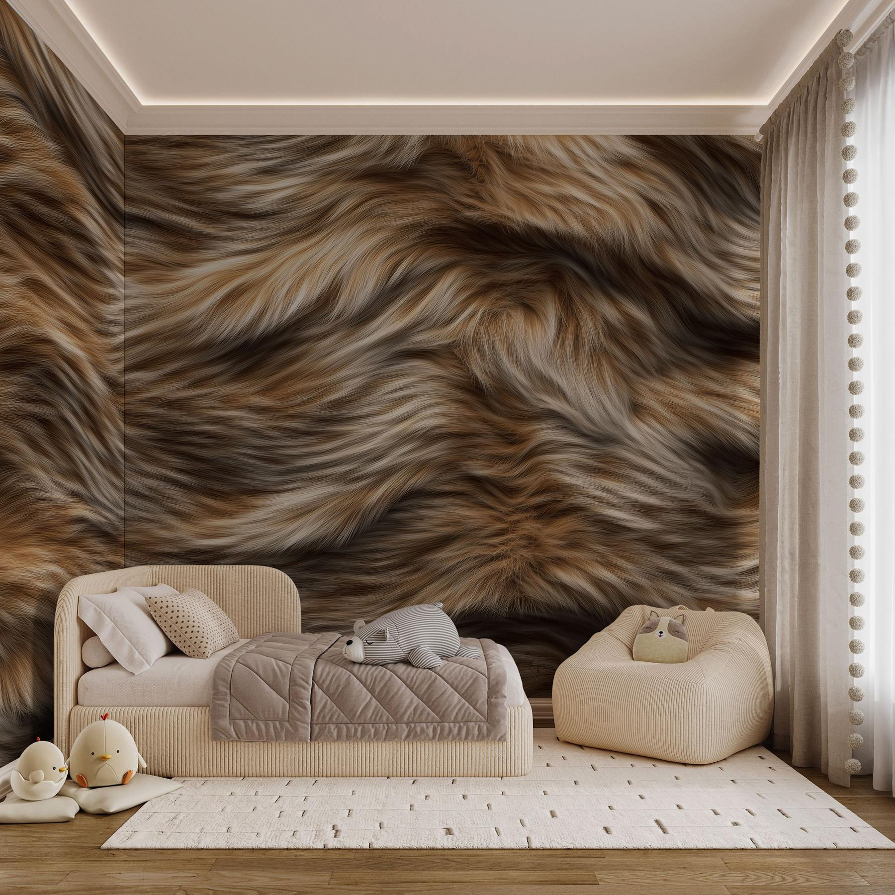 Transformați-vă spațiul cu această pictură murală uimitoare, cu texturi moi, fluide, în nuanțe calde, confortabile și primitoare. Imaginați-vă că pășiți într-o cameră în care pereții șoptesc confort, ca un pulover preferat într-o zi răcoroasă. Este perfect pentru iubitorii de pisici sau pentru oricine apreciază frumusețea subtilă a naturii. Pereții dvs. se vor simți ca o îmbrățișare blândă, transformând orice spațiu obișnuit într-un refugiu fermecător.